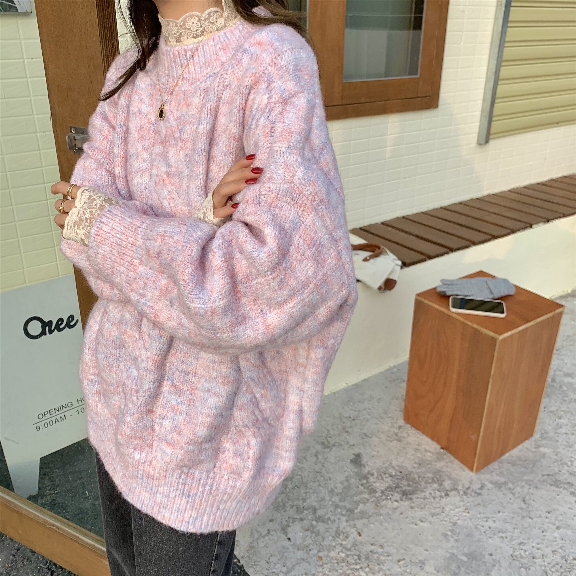 トップス ニット レディース セーター ツイスト ミックス 可愛い かわいい カワイイ ゆる ふわふわ ピンク ホワイト ラウンドネック 丸首 オーバーサイズ 春 秋 冬 ニュアンス カラー ファッション 通勤 通学 公園 散歩 ピクニック カッコイイ かっこいい クール 女っぽ 大人可愛い 大人 おとな 韓国 コーデ コーディネート 10代 20代 30代 40代 お洒落 おしゃれ オシャレ 送料無料 抜け感