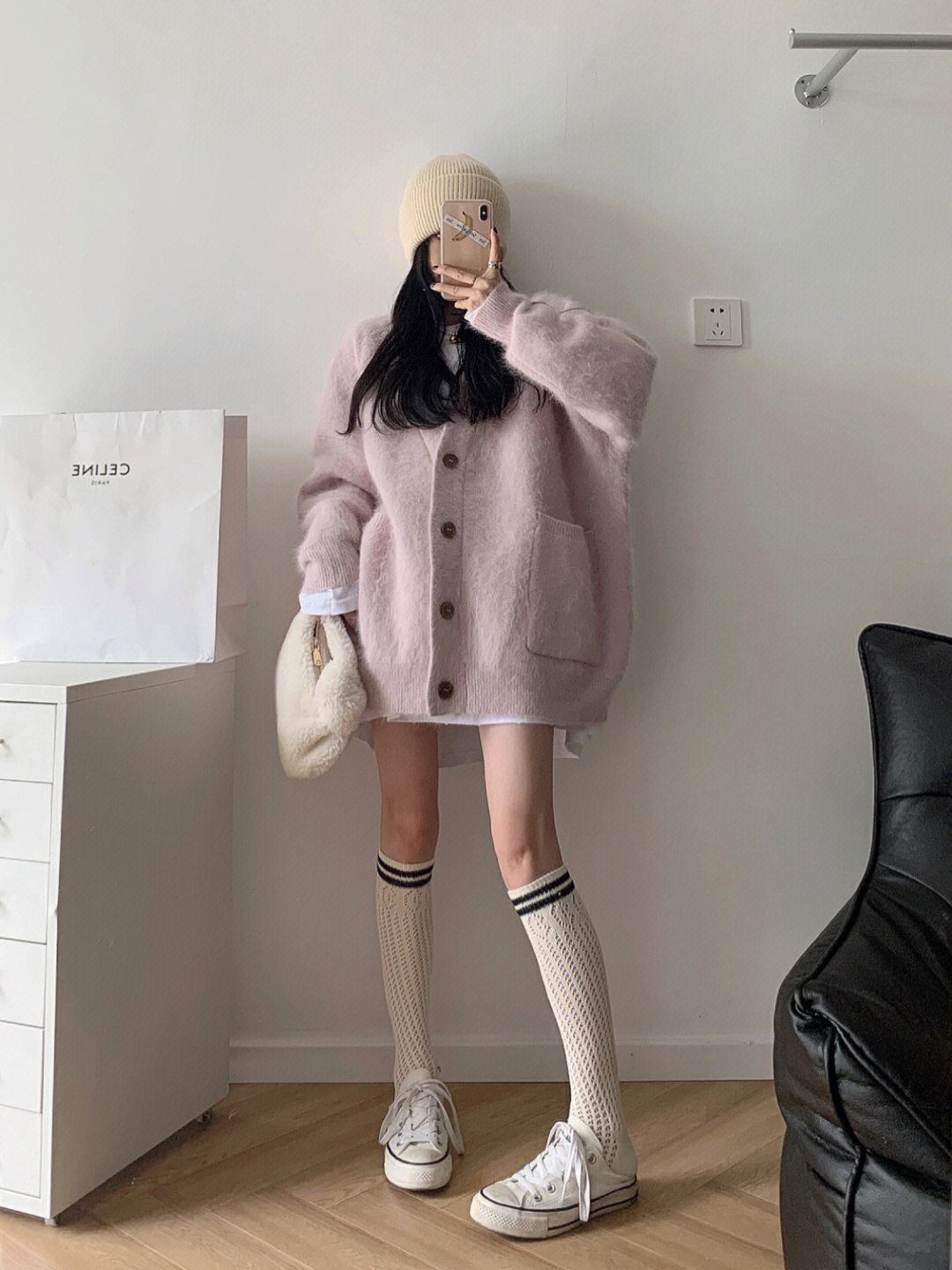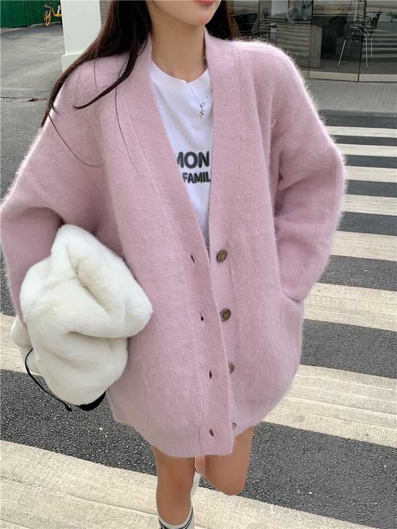 【着用レビュー】トップス レディース カーディガン ロングカーディガン ルーズ ピンク 長袖 トップス Vネック ドロップショルダー モヘア 可愛い かわいい カワイイ 送料無料 ストリート ワンピ ワンピース ふわふわ オーバーサイズ 流行 韓国 アイドル k pop 学園 プレッピー 優等生 学生 通勤 通学 デイリー コーデ ビッグサイズ メンズライク うさぎ ウサギ 大人 大人可愛い おとな 大人女子 女子会 デート 普段着 ワンマイル 空港ファッション 機内 飛行機 旅行 春 秋 冬