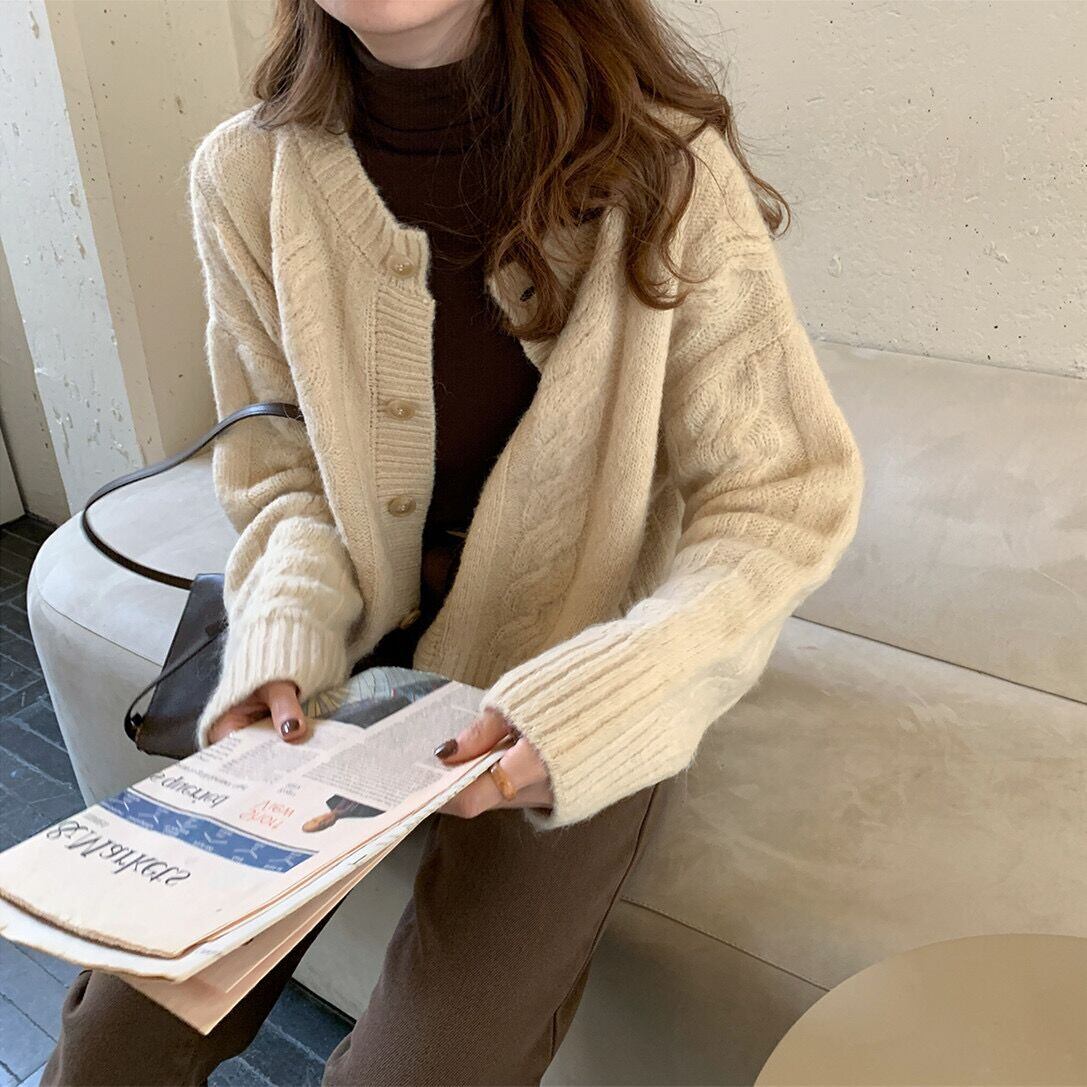 トップス レディース カーディガン ニット ケーブル 長袖 レトロ クルーネック ラウンドネック 2色 トップス 丸首 羽織物 大人 おとな 大人女子 大人可愛い 韓国 綺麗 きれい キレイ ボタン 春 秋 冬 ゆったり ゆる 散歩 カフェ巡り 休日 通勤 通学 ほっこり S M L XL オフホワイト ブラウン グレー 送料無料 かわいい 可愛い OL 学生 旅行 きれいめ ライブ コンサート イベント パーティー 主役級 お呼ばれ 女子会 デート デイリー 普段使い 定番 誕生日 着回し ギフト