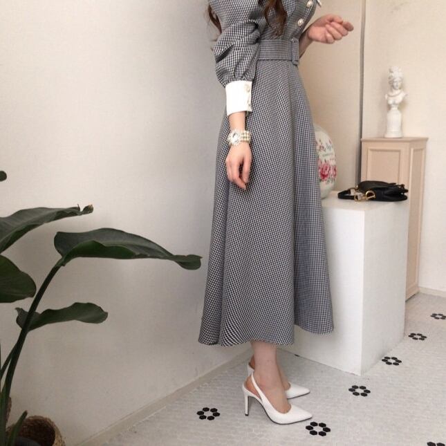 ワンピース レディース 大振り襟 チェック柄 Aラインワンピース 冬 長袖 チェック ギンガムチェック ロングワンピース パフスリーブ ラペル パワーショルダー シック 黒 白 ブラック ホワイト 大人女子 プリンセス ウエストマーク ハイウエスト 通勤 通学 デート 脚長効果 美脚効果 送料無料 ベルト付き レトロ ボタン ビック襟 量産型 ロング丈 長袖 韓国 フェミニン エレガント 可愛い 大人可愛い 上品 清楚 お呼ばれ 女子会 パーティー S M L 安い プチプラ