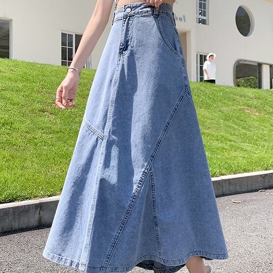 スカート レディース デニムスカート 切り替え フレア ロング ボトムス ロング丈 デニム かわいい 大人可愛い きれいめ シンプル カジュアル 大人 上品 おしゃれ かっこいい レトロ 大人可愛い 大人女子 送料無料 ラブリー キュート モダン シーズンレス オールシーズン 無地 春 秋 10代 20代 30代 レディース 女性用 通勤 学生 通学 デート お出かけ 女子会 休日 春 夏 秋 冬 着回し 普段使い 韓国系 コーデ スタイル S M L XL ブルー
