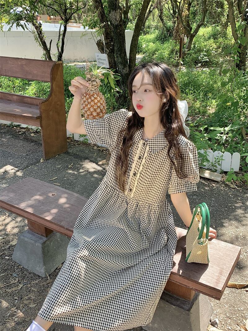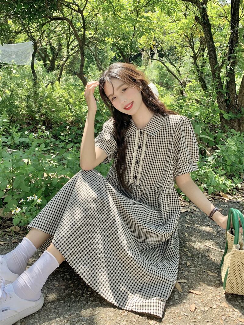 【着用レビュー】ワンピース レディース フレアワンピース S M チェック柄 ギンガムチェック ミディアム丈 膝下丈 ミモレ丈 半袖 パフスリーブ 前開き ボタン レース 襟付き 襟あり 清楚 上品 かわいい 可愛い シンプル カジュアル おしゃれ レトロ キュート ガーリー ブラック 無地 春 夏 秋 10代 20代 30代 OL 通勤 学生 通学 デート お出かけ 女子会 パーティー イベント 着回し 韓国系 ファッション コーデ スタイル 楽ちん モテ 流行 インスタ 定番 リラックス 送料無料