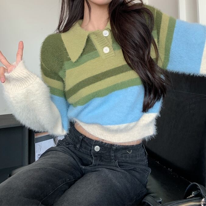 トップス レディース セーター レトロ ポロ襟 ニットソー プルオーバー ニット ショート丈 長袖 ボーダー トレンド 襟 ラガーシャツ ゆったり スタイリッシュ レースアップ ドロップショルダー 体型カバー ランタンスリーブ あったか 着痩せ ふわふわ 大人可愛い かわいい カジュアル MIX ガーリー 韓国 シンプル ラフ 送料無料 おしゃれ スポーティー 部屋着 お買い物 ママコーデ 春 秋 冬 お出かけ 女子会 通学 学生 普段着 普段使い 着回し フリーサイズ 10代 20代 30代 40代