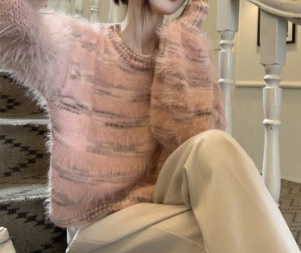 トップス レディース セーター ニット シャギーニット パステルカラー ストライプ 縞 長袖 ラウンドネック ボーダー ストレート プルオーバー 可愛い 大人可愛い おしゃれ カジュアル ルーズ ラフ 送料無料 大人女子 大人 キュート ラブリー ガーリー シンプル とろみ感 抜け感 フリーサイズ ゆったり ライトブルー ピンク 秋 冬 10代 20代 30代 40代 ママ 女の子 通勤 通学 お出かけ 休日 デート 女子会 旅行 着回し 普段使い ファッション コーデ スタイル 楽ちん あったか
