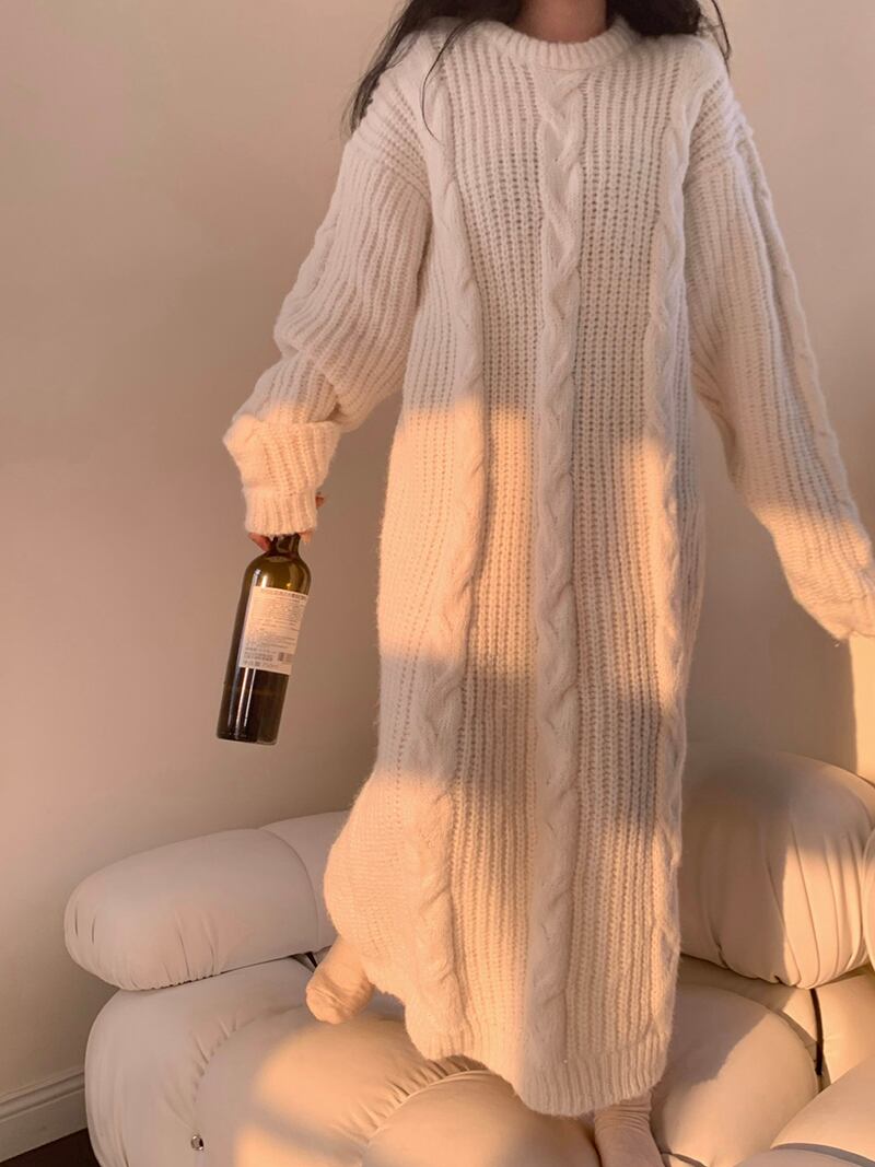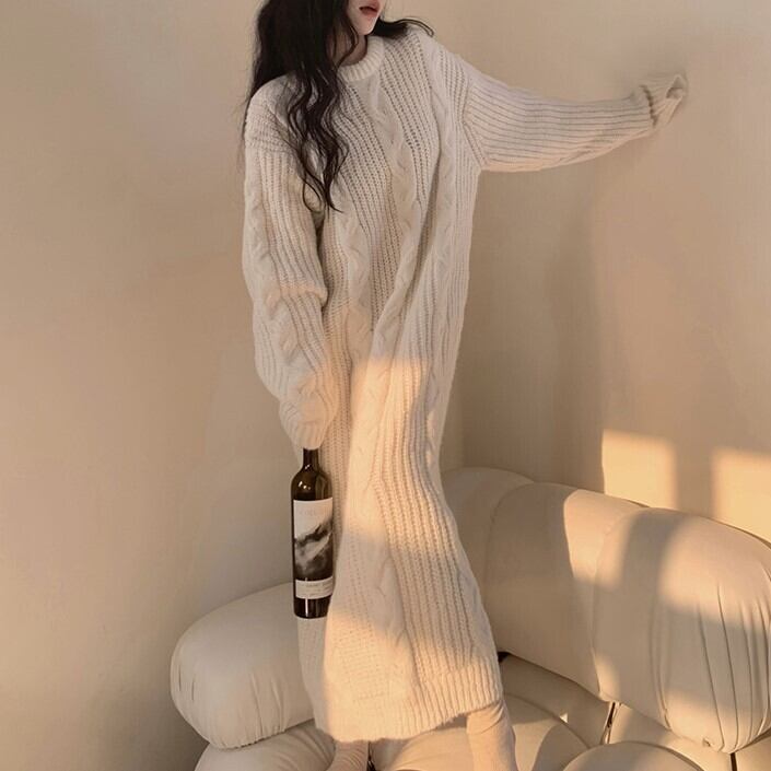 ワンピース レディース トップス ニットワンピース ニット セーター ドレス ロングスカート ロング プルオーバー 長袖 ラウンドネック Aライン ハイウエスト ケーブルニット かわいい 大人可愛い きれいめ シンプル 大人 おしゃれ レトロ 大人女子 ラフ 送料無料 キュート ガーリー ルーズ とろみ感 フリーサイズ ゆったり ホワイト 無地 秋 冬 クリスマス バレンタイン 10代 20代 30代 40代 通勤 学生 学生 デート 女子会 着回し 普段使い 韓国 楽ちん あったか 体型カバー