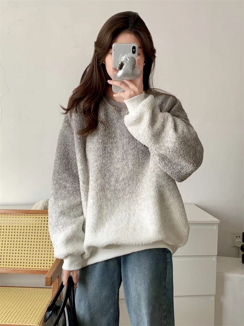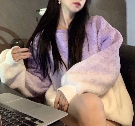トップス レディース セーター ニット グラデーション もこもこ クルーネック 丸首 長袖 ドロップショルダー オーバーサイズ バイカラー 配色 ルーズ ラフ デザイン 秋 冬 10代 20代 30代 40代 おしゃれ かわいい 大人可愛い カジュアル シンプル 大人カジュアル フェミニン モテコーデ 暖かい レトロ ガーリー 送料無料 カワイイ ピンク グレー パープル デート お出かけ 女子会 買い物 旅行 通学 学生 普段使い デイリー 普段着 部屋着 韓国ファッション 韓国系 韓国 誕生日