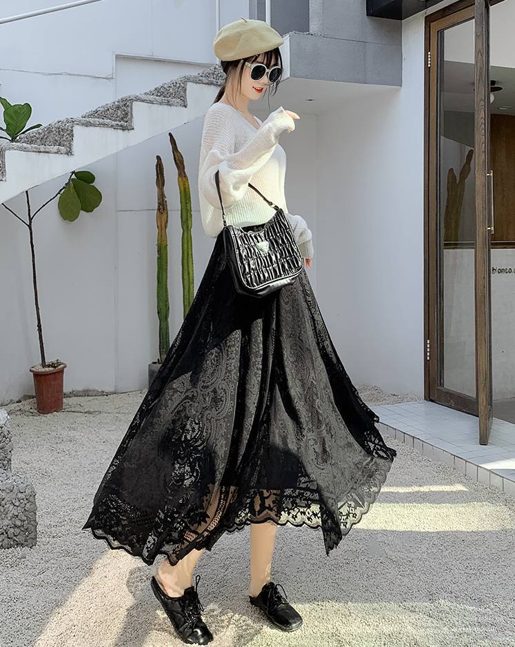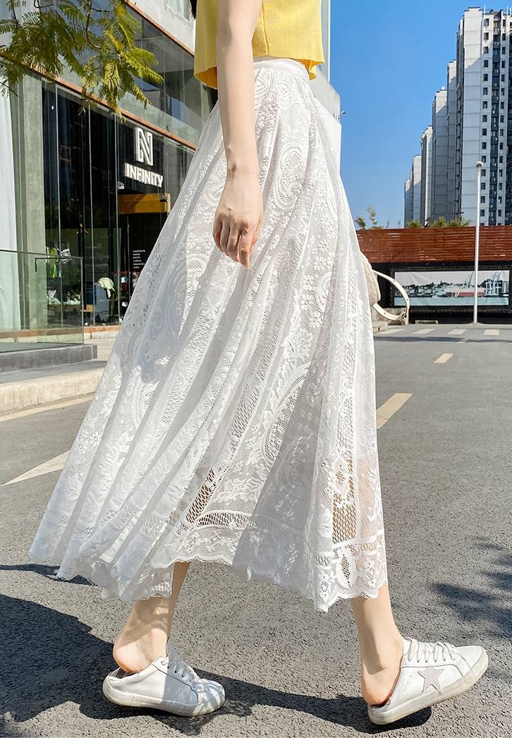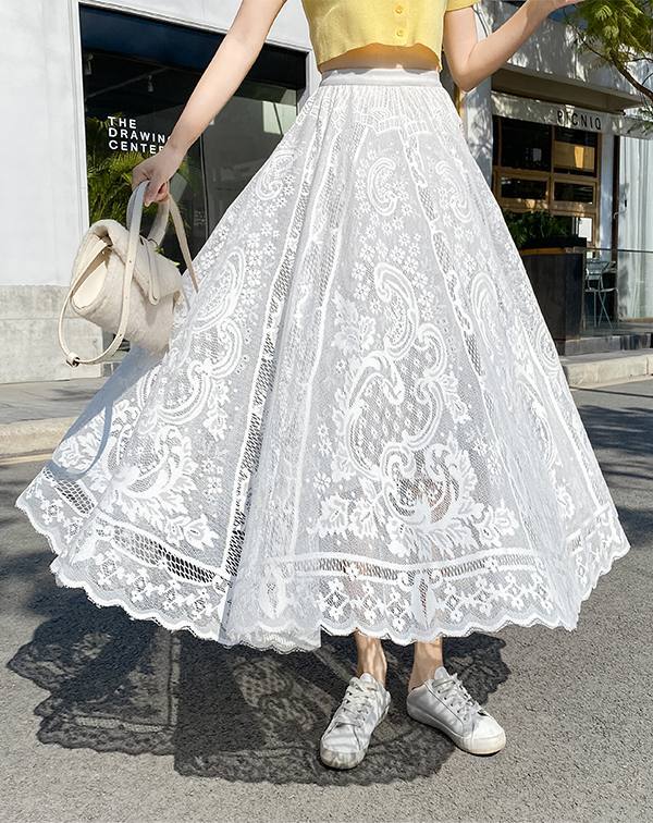 【着用レビュー】スカート レディース ロングスカート レース フレア ロング丈 ボトムス 無地 丈長め かわいい 大人可愛い きれいめ シンプル カジュアル 大人 上品 おしゃれ かっこいい 大人可愛い 大人女子 送料無料 ラブリー キュート モダン 春 夏 秋 冬 10代 20代 30代 40代 通勤 学生 通学 デート お出かけ 女子会 休日 着回し 普段使い 韓国 コーデ スタイル 美脚 ホワイト ブラック アプリコット パープル