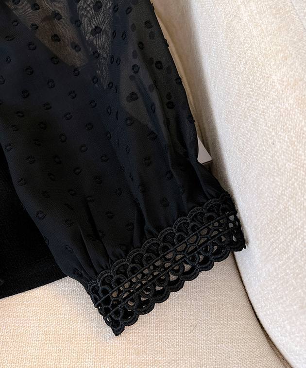 お袖がドットのシースルー素材でとっても可愛い♪サイズ感も丁度良く、バストのレースデザインが凝っていて可愛いです。パンツスタイルでもスカートでも合わせやすいデザインです。