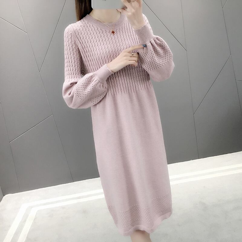 ワンピース レディース ニットワンピ セータードレス 膝下 ミディアム丈 長袖 ラウンドネック ハイウエスト かわいい 大人可愛い きれいめ 上品 おしゃれ お洒落 こなれ感 ラブリー キュート 存在感 無地 冬 20代 30代 40代 ママ OL 学生 通学 デート お出かけ 女子会 休日 着回し 普段使い 韓国 韓国系 送料無料 ファッション コーデ スタイル 体型カバー トレンド 流行 ワンサイズ フリーサイズ ピンク ベージュ ブルー ブラウン ブラック レッド グリーン
