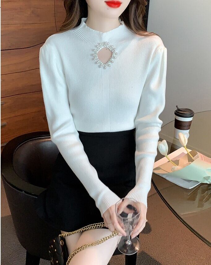 トップス レディース セーター ニット ハーフ ハイカラー 長袖 ハーフハイネック スリム 細身 パール キラキラ かわいい 大人可愛い きれいめ シンプル カジュアル 上品 大人 おしゃれ 大人女子 メンズライク ラブリー キュート ガーリー セクシー エレガント 送料無料 存在感 S M L XL ホワイト ブラック ピンク 無地 秋 冬 クリスマス バレンタイン 10代 20代 30代 OL 通勤 学生 通学 デート 女子会 着回し 韓国系 ファッション コーデ モテ トレンド 流行 インスタ映え