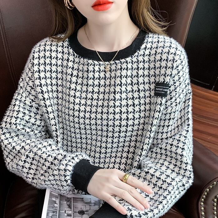 小さめの千鳥柄がふんだんに施されたお洒落なニットプルオーバー♪