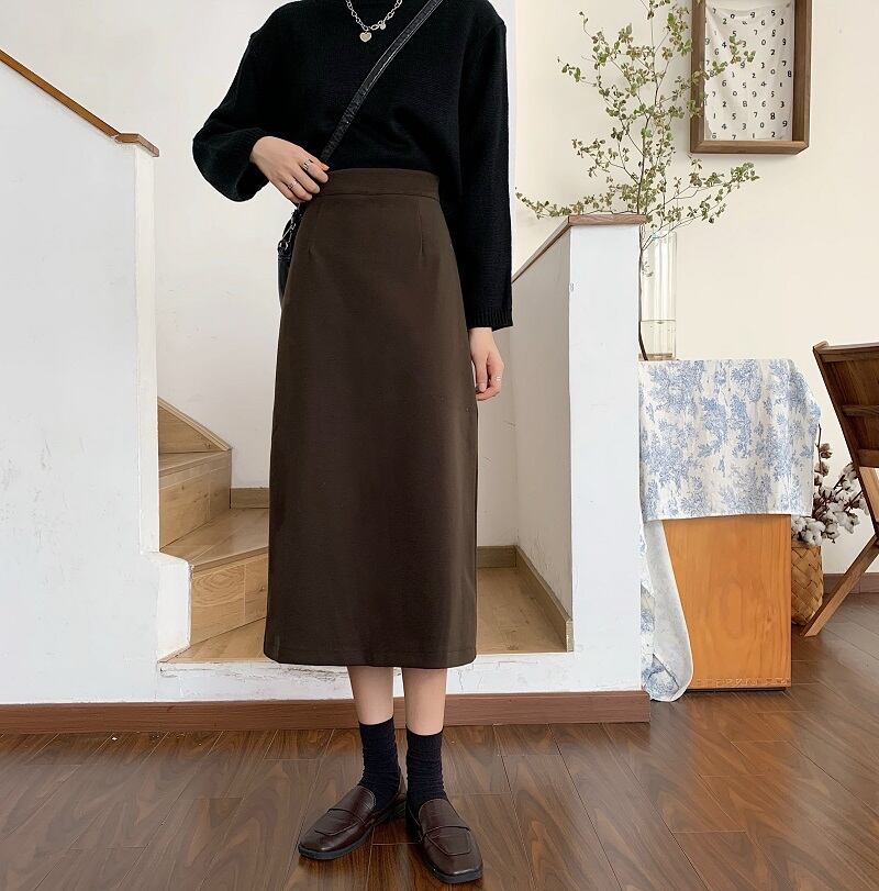 スカート レディース ロングスカート ロング ロング丈 スリット バックスリット ハイウエスト かわいい 大人可愛い きれいめ シンプル カジュアル 大人 上品 おしゃれ お洒落 こなれ感 ラブリー キュート 存在感 無地 秋 冬 10代 20代 30代 40代 OL 通勤 学生 通学 デート お出かけ 女子会 着回し 普段使い 韓国 韓国系 送料無料 ファッション コーデ スタイル モテ 体型カバー 脚長 トレンド 流行 S M L XL 2XL 3XL 大きいサイズ コーヒー ブラック ブラウン