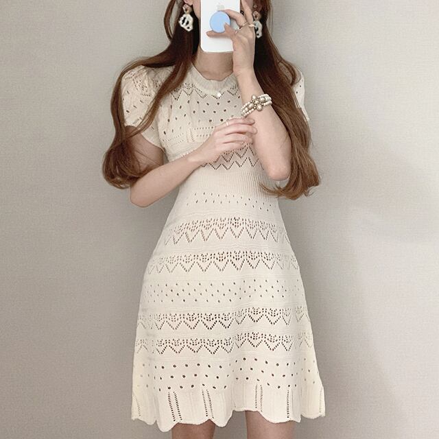 ニットの透かし編みがおしゃれなサマードレス。