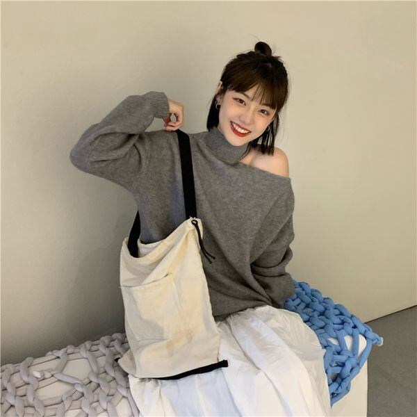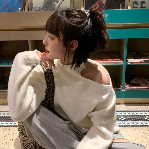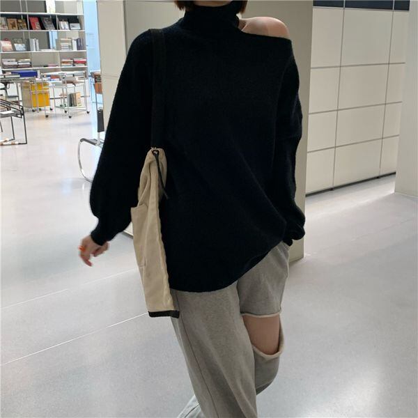 トップス レディース ニット セーター プルオーバー アシンメトリー カットアウト 長袖 袖あり かわいい 大人可愛い きれいめ シンプル カジュアル 大人 おしゃれ お洒落 こなれ感 キュート 主役級 存在感 抜け感 無地 秋 冬 10代 20代 30代 通学 デート お出かけ 休日 着回し 普段使い 韓国 韓国系 送料無料 ファッション コーデ スタイル モテ 体型カバー トレンド 流行 S M L XL ブラック グレー ホワイト ゆったり