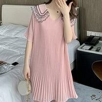 ワンピース レディース プリーツ レース襟 ホワイト ブラック ピンク カラバリ ミニ丈 半袖 ドレス 透け感 スカラップ Vネック Aライン スタイルアップ 脚長効果 シンプル カジュアル フェミニン ガーリー キュート 大人可愛い おしゃれ 普段使い イベント デート お出かけ 女子会 休日 旅行 着まわし ファッション コーデ スタイル モテ 送料無料 抜け感 涼しげ 春 夏