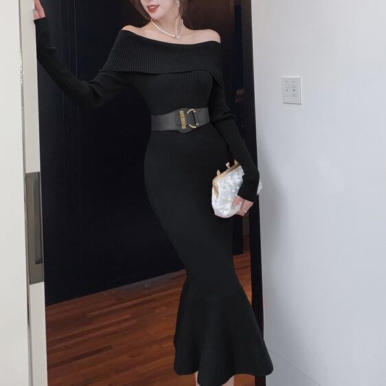 ワンピース ドレス レディース ロングワンピース マーメイドワンピース ロング丈 袖あり 長袖 オフショルダー スレンダーライン 異素材ドッキング ウエストベルト ニット きれいめ 大人 上品 お洒落 かっこいい 送料無料 キュート ガーリー エレガント フォーマル 美しい 高級感 クラシカル 春 秋 冬 10代 20代 30代 40代 オフィス ビジネス OL デート お出かけ 女子会 パーティー イベント 旅行 韓国 韓国系 ファッション スタイル 体型カバー インスタ映え S M L ホワイト