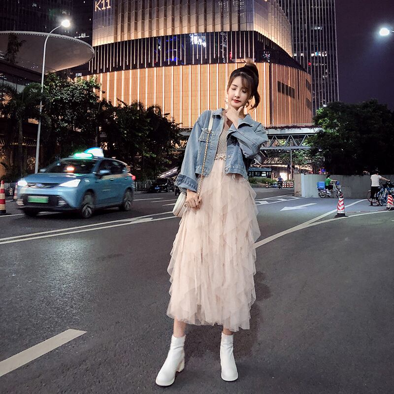 画像のようにデニムジャケットと合わせて甘辛コーデも◎
