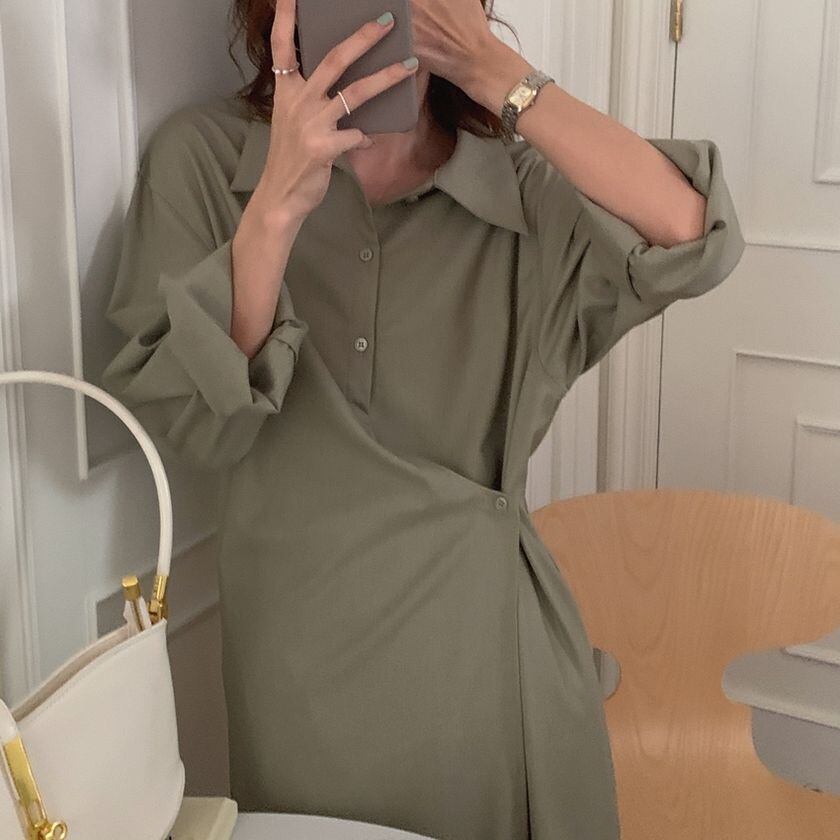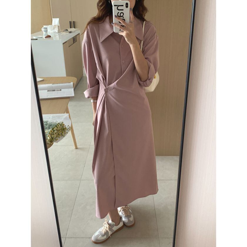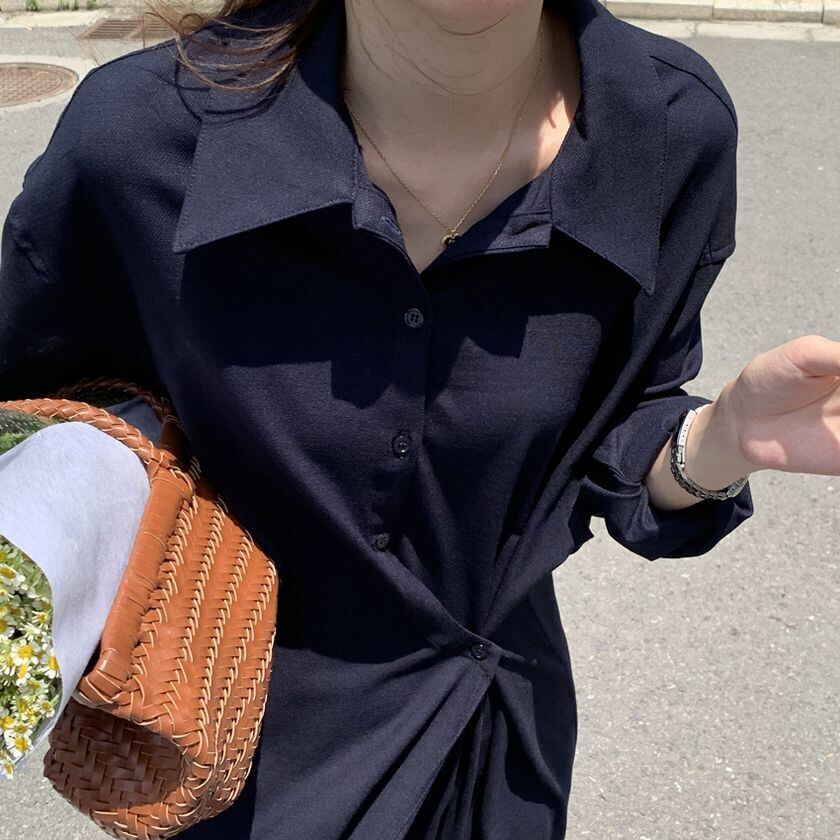 ワンピース レディース シャツワンピース 3カラー ネイビー カーキ ピンク フリーサイズ ワンサイズ カラバリ ロングワンピース ロングシャツ 羽織り 日焼け対策 冷え防止 襟付き 長袖 無地 アシンメトリー ボタン スリット オーバーサイズ リラクシー ゆったり ルーズ 体型カバー シンプル カジュアル 大人可愛い おしゃれ 普段使い イベント デート お出かけ 休日 通勤 通学 旅行 ファッション コーデ スタイル モテ 着まわし 送料無料 こなれ感 春 夏 秋