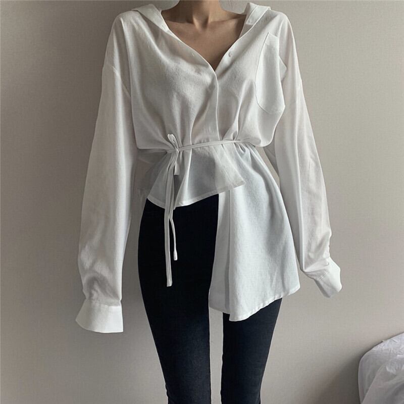トップス レディース ブラウス シャツ 白シャツ アシンメトリー 長袖 ボリューム袖 Vネック ギャザー ウエストマーク 透け感 ボタン かわいい 大人可愛い きれいめ シンプル カジュアル 大人 上品 おしゃれ かっこいい 大人女子 ラフ ガーリー キュート 個性的 クール 送料無料 とろみ感 フリーサイズ ホワイト 無地 春 夏 秋 10代 20代 30代 OL 通勤 学生 通学 デート 女子会 着回し 普段使い 韓国系 ファッション モテ スタイル インスタ映え トレンド 流行 体型カバー