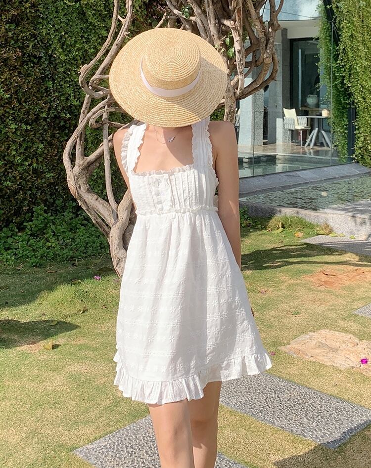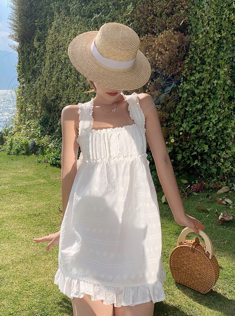 ワンピース レディース ひざ丈 ノースリーブ スクエアネック フリル かわいい 大人可愛い きれいめ シンプル カジュアル 大人 上品 おしゃれ かっこいい 大人可愛い 大人女子 送料無料 ラブリー キュート セクシー モダン 柄 フラワー 春 秋 10代 20代 30代 レディース 女性用 通勤 学生 通学 デート お出かけ 女子会 休日 着回し 普段使い 韓国系 コーデ スタイル S M L ホワイト