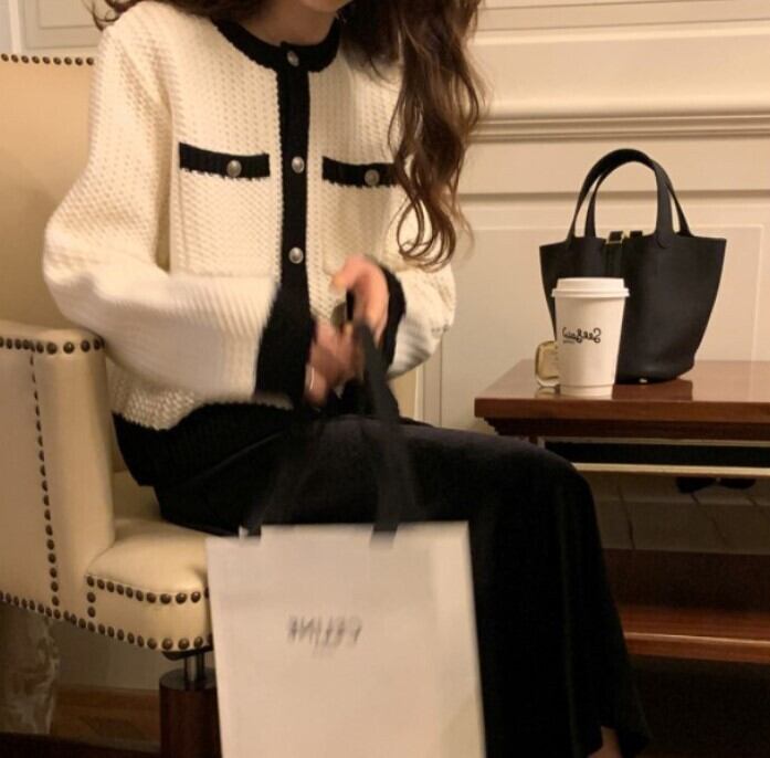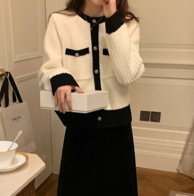 トップス レディース ニット セーター カーディガン ショート丈 長袖 ボタン かわいい 大人可愛い きれいめ 大人 上品 おしゃれ お洒落 ラブリー キュート ガーリー 主役級 存在感 フェミニン 無地 秋 冬 20代 30代 40代 ビジネス OL 通勤 学生 通学 デート 女子会 休日 着回し 普段使い 重ね着 韓国 韓国系 送料無料 ファッション コーデ スタイル モテ S M L XL ゆったり ゆる 白 ホワイト 黒 ブラック 灰色 グレー バイカラー 配色