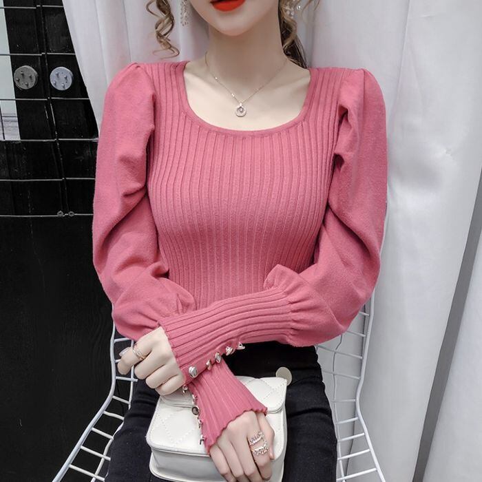 トップス レディース ニット セーター プルオーバー Uネック 長袖 袖あり リブ ボタンカフス かわいい 大人可愛い きれいめ シンプル カジュアル 大人 おしゃれ お洒落 こなれ感 キュート 主役級 存在感 抜け感 無地 秋 冬 10代 20代 30代 40代 OL 通勤 学生 通学 デート お出かけ 女子会 休日 着回し 普段使い 韓国 韓国系 送料無料 ファッション コーデ スタイル モテ 体型カバー トレンド 流行 フリーサイズ ワンサイズ ピンク ホワイト ブラック