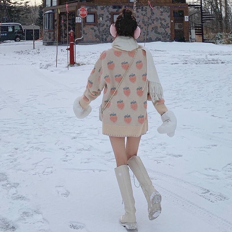 トップス レディース ニット セーター プルオーバー 長袖 袖あり ラウンドネック ピーチ 桃 モモ かわいい 大人可愛い きれいめ シンプル カジュアル 大人 おしゃれ お洒落 こなれ感 キュート ラブリー ガーリー 主役級 存在感 抜け感 柄 秋 冬 10代 20代 30代 学生 通学 デート お出かけ 女子会 休日 着回し 普段使い 韓国 韓国系 送料無料 ファッション コーデ スタイル モテ 体型カバー トレンド 流行 S M L XL インスタ映え