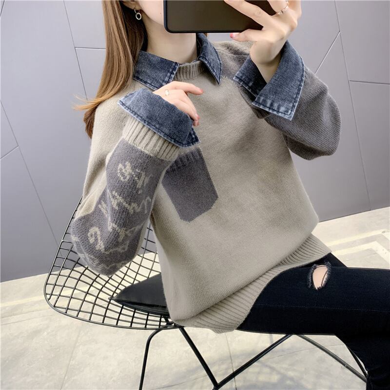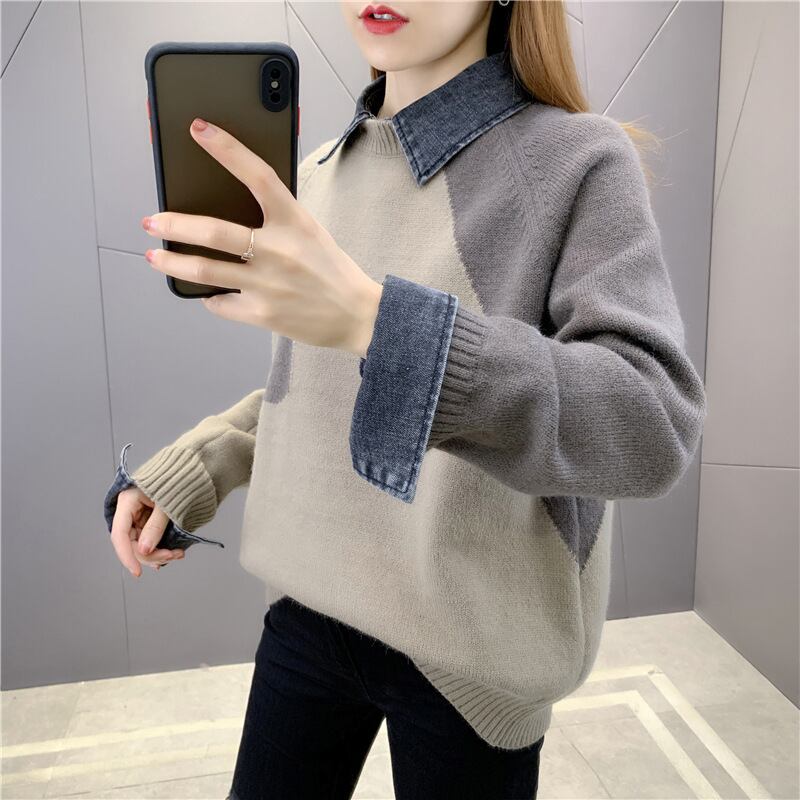 トップス レディース ニット セーター プルオーバー 長袖 重ね着風 ポケット 襟付き かわいい 大人可愛い きれいめ シンプル カジュアル 大人 上品 おしゃれ お洒落 こなれ感 キュート 主役級 存在感 個性的 無地 秋 冬 10代 20代 30代 40代 OL 通勤 学生 通学 デート お出かけ 女子会 休日 着回し 普段使い 韓国 韓国系 送料無料 ファッション コーデ スタイル モテ 体型カバー トレンド 流行 ワンサイズ ホワイト カーキ グレー ブラック 黒 白 灰色