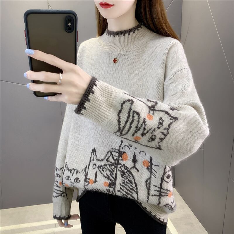 トップス レディース ニット セーター プルオーバー 長袖 ハイネック かわいい 大人可愛い きれいめ シンプル カジュアル 大人 上品 おしゃれ お洒落 こなれ感 キュート ラブリー 個性的 アニマル ネコ 猫 ねこ 主役級 存在感 抜け感 無地 秋 冬 10代 20代 30代 40代 OL 通勤 学生 通学 デート お出かけ 女子会 休日 着回し 普段使い 韓国 韓国系 送料無料 ファッション コーデ スタイル モテ 体型カバー トレンド 流行 フリーサイズ ホワイト ライトブルー ネイビー
