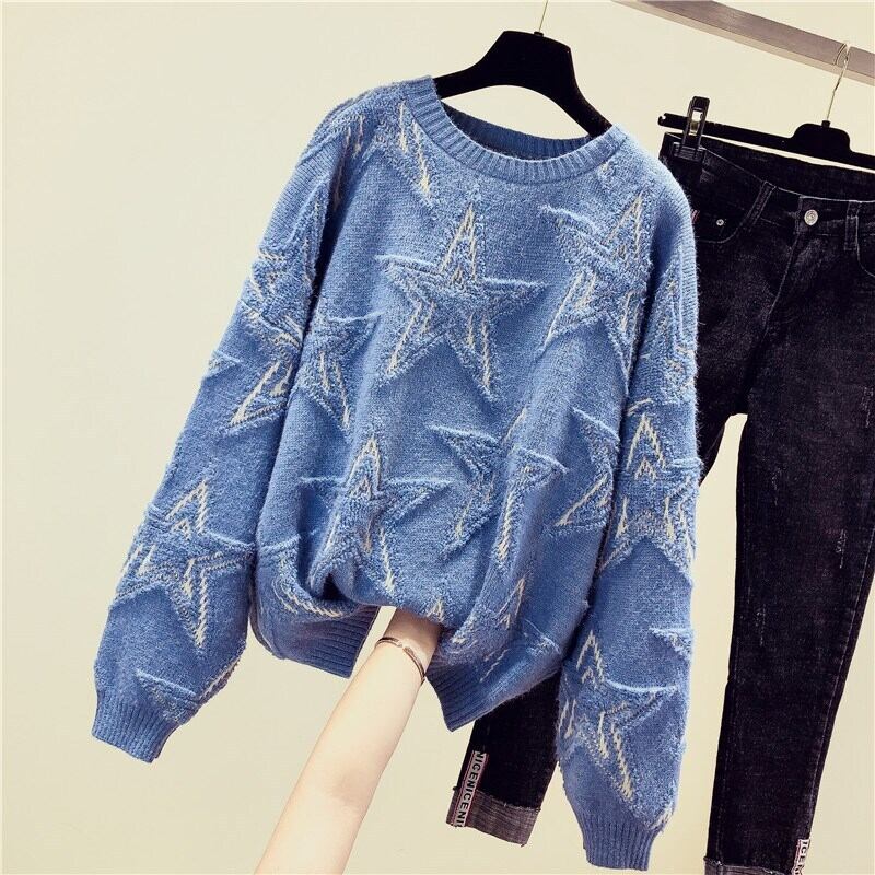 トップス レディース ニット セーター プルオーバー 長袖 ラウンドネック かわいい 大人可愛い きれいめ シンプル カジュアル 大人 上品 おしゃれ お洒落 こなれ感 キュート ラブリー 個性的 柄 星 スター 主役級 存在感 抜け感 無地 秋 冬 10代 20代 30代 40代 OL 通勤 学生 通学 デート お出かけ 女子会 休日 着回し 普段使い 韓国 韓国系 送料無料 ファッション コーデ スタイル モテ 体型カバー トレンド 流行 S M L XL オーバーサイズ ブルー ベージュ