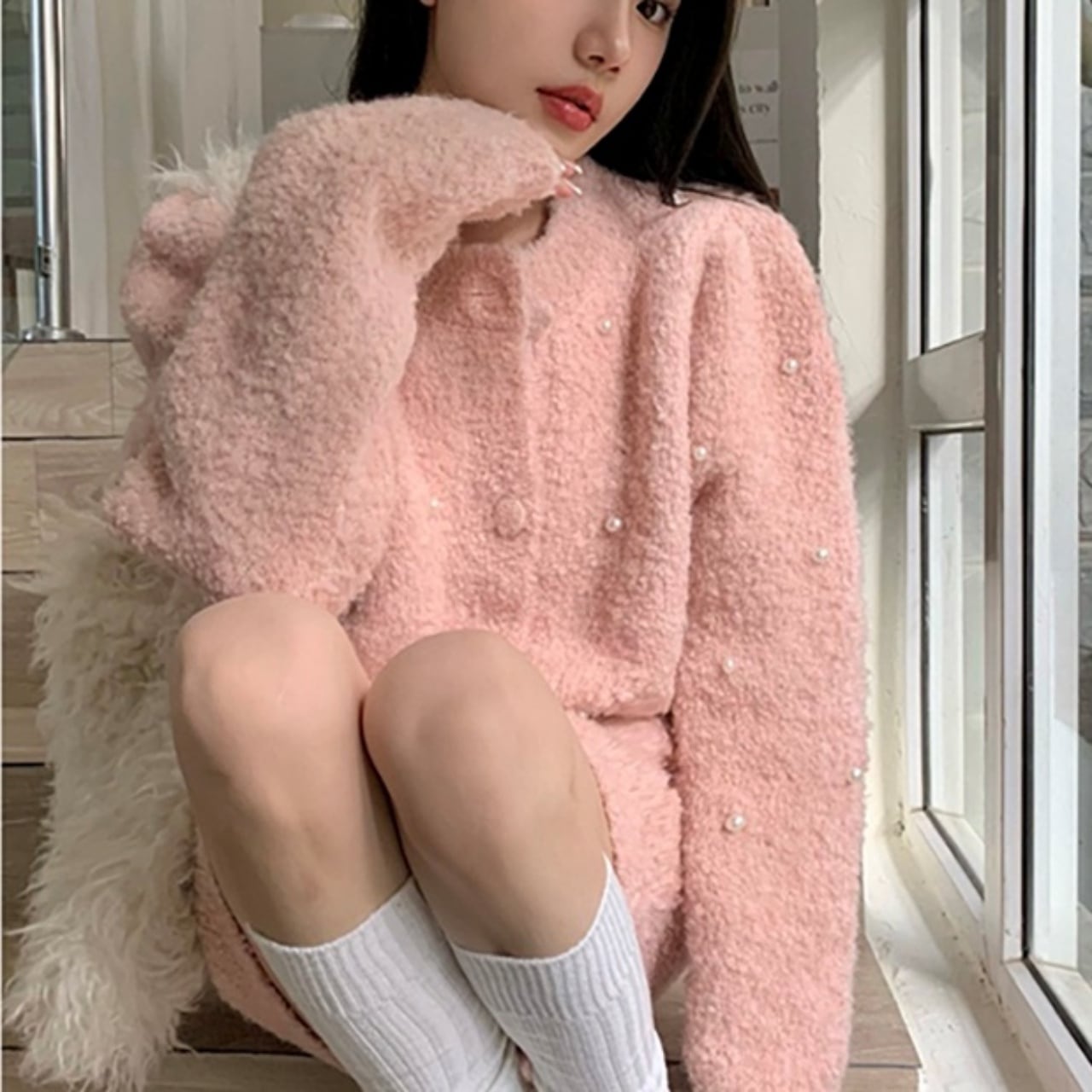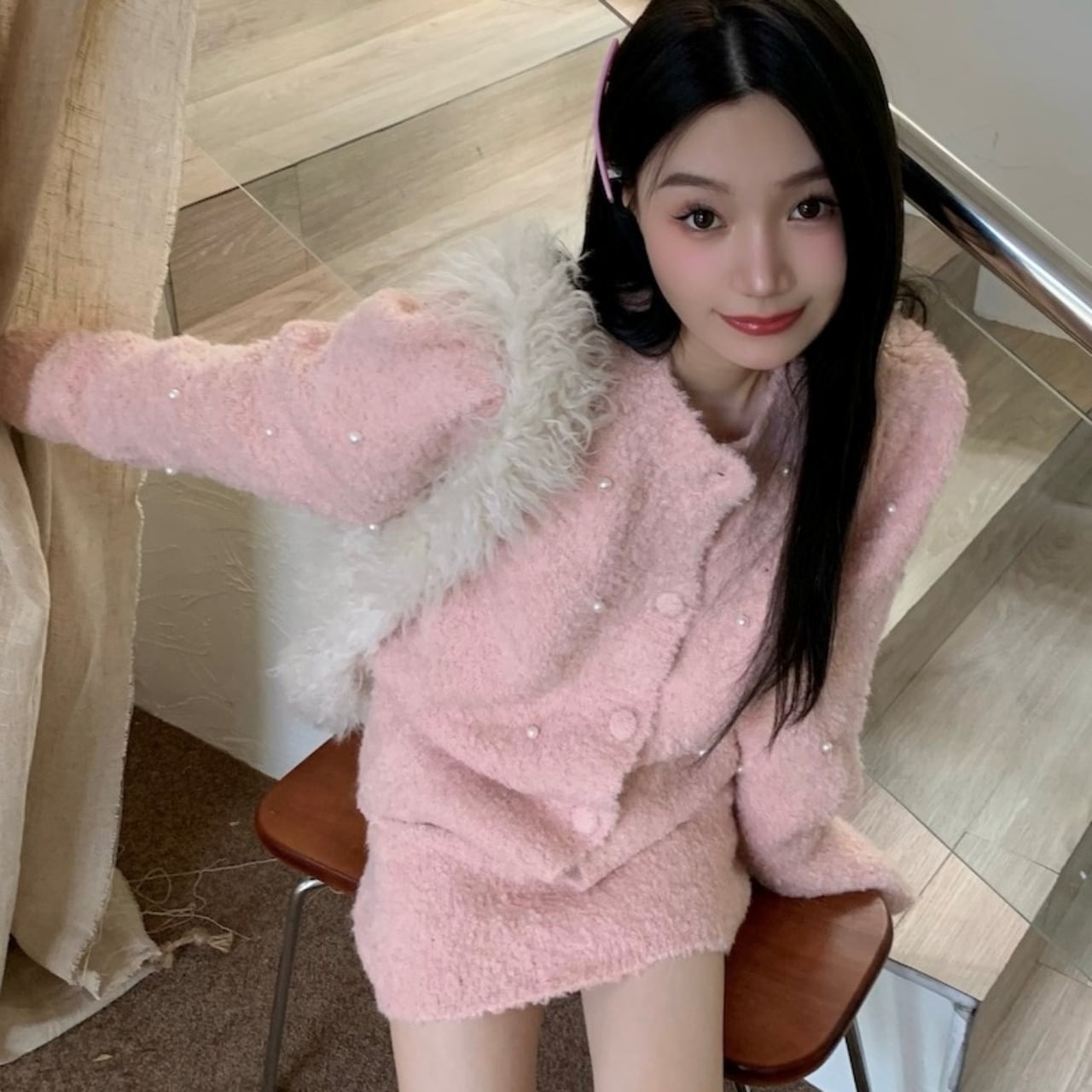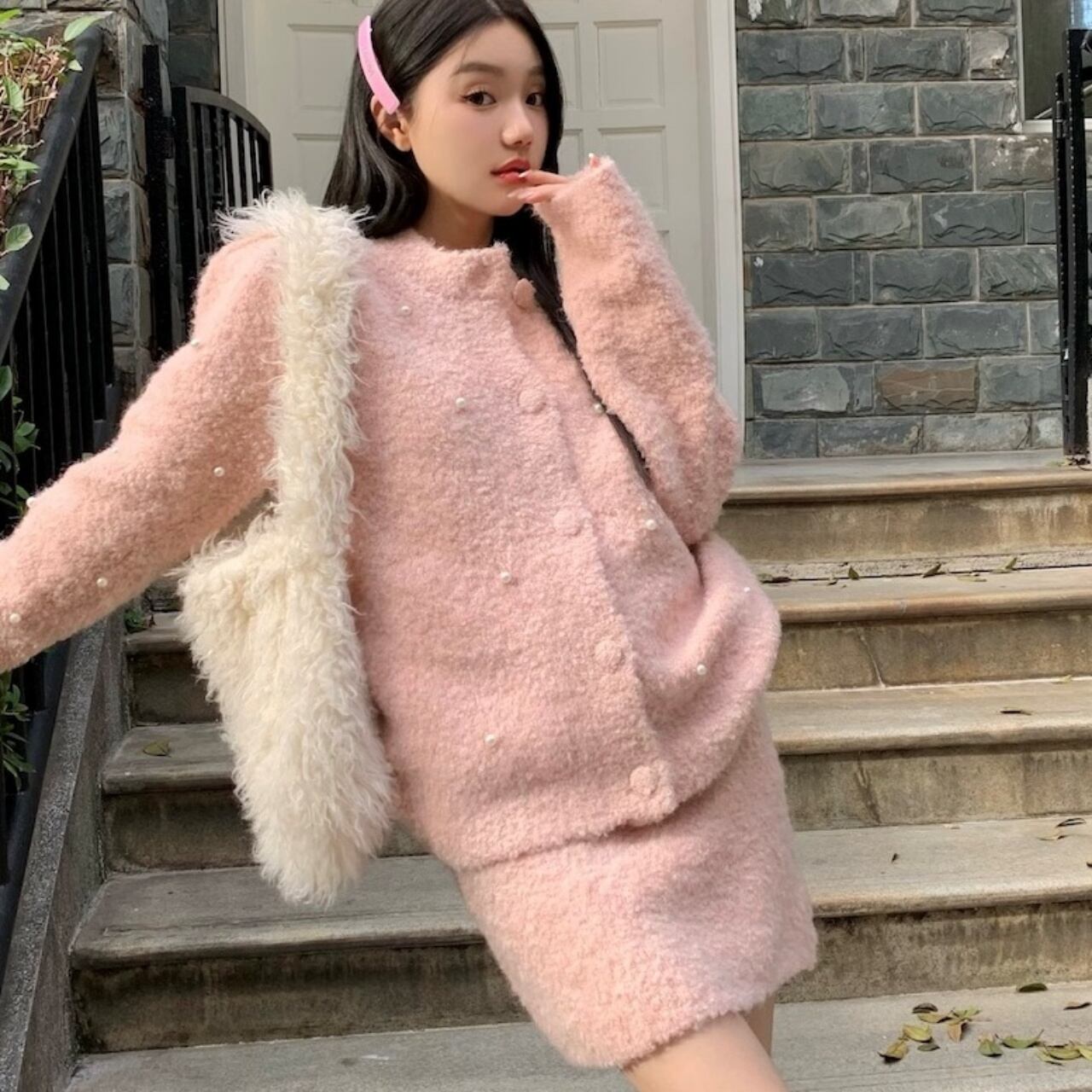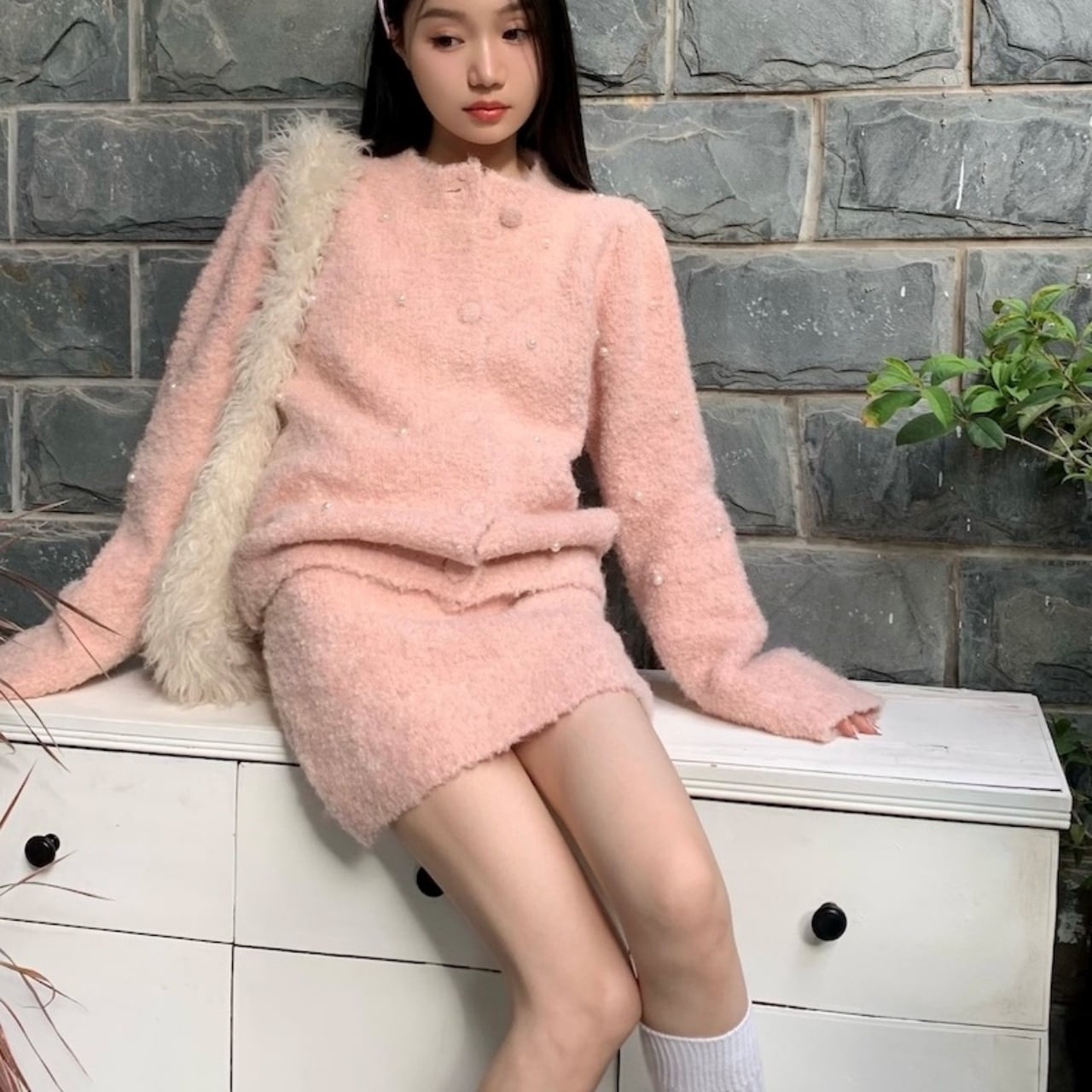 セットアップ トップス スカート レディース ふわふわ カーディガン 部屋着 ナイトウェア ミニスカート ショート丈 長袖 萌袖 ふわふわ 前開き スリム タイト 細身 もこもこ ラブリー キュート ガーリー ルーズ セクシー 送料無料 ニット 2点セット 上下セット ツーピース フリーサイズ 春 秋 冬 ピンク くすみカラー 10代 20代 30代 イベント インスタ映え デート お出かけ お泊り 休日 美脚 脚長 新作 韓国系 コーデ スタイル 楽ちん モテ 普段使い 韓国 お嬢様 ガーリー