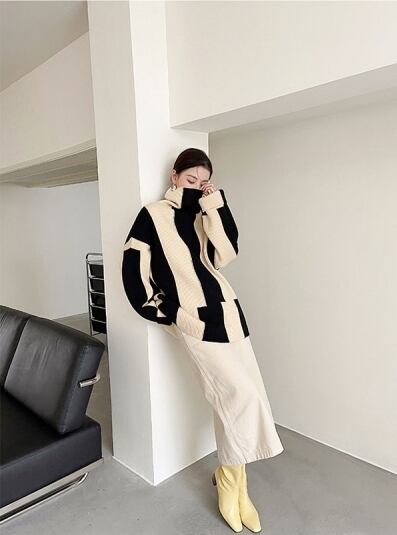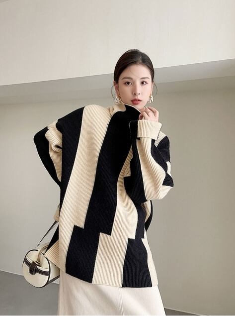 ック ニット 厚手 かわいい 大人可愛い きれいめ シンプル カジュアル 大人 上品 おしゃれ レトロ 大人女子 こなれ感 ラフ キュート ガーリー ルーズ 個性的 送料無料 フリーサイズ ゆったり ブラック ベージュ バイカラー ストライプ 秋 冬 10代 20代 30代 OL 通勤 学生 通学 デート お出かけ 女子会 着回し 普段使い 韓国系 ファッション スタイル 楽ちん あったか モテ 体型カバー トレンド 流行 インスタ映え