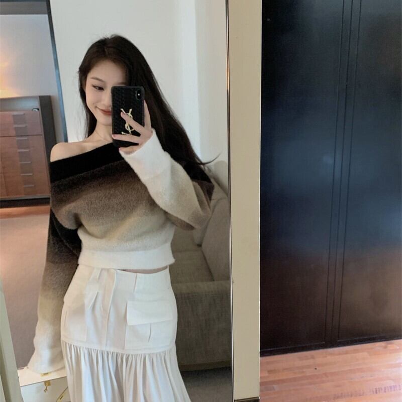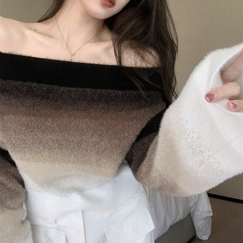 トップス レディース セーター ニット 長袖 ドロップショルダー オフショルダー ストレート グラデーション 厚手 かわいい 大人可愛い きれいめ シンプル カジュアル 大人 上品 おしゃれ 大人女子 こなれ感 ラフ ラブリー キュート ガーリー ルーズ 個性的 セクシー 送料無料 とろみ感 フリーサイズ ゆったり ブラウン 秋 冬 10代 20代 30代 通勤 学生 通学 デート お出かけ 女子会 着回し 普段使い 韓国系 ファッション コーデ スタイル 楽ちん モテ トレンド インスタ映え 流行