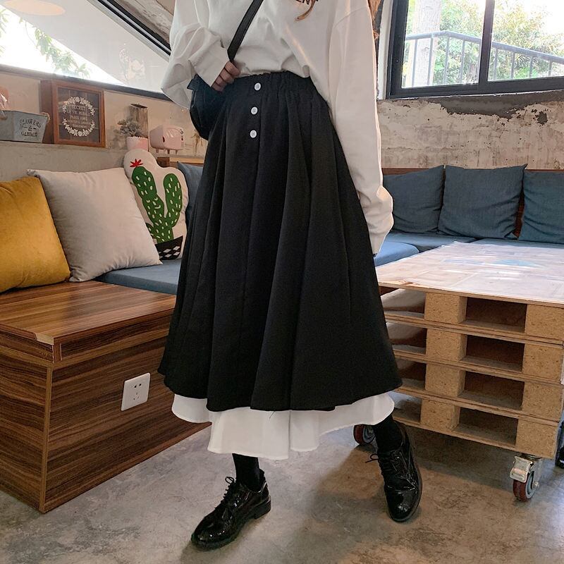 スカート レディース フレアスカート ボトムス ロング丈 フレア 切り替えデザイン ハイウエスト ボタン かわいい 大人可愛い シンプル カジュアル おしゃれ レトロ 大人女子 こなれ感 ラフ ラブリー キュート ガーリー 個性的 送料無料 M L XL 2XL 大きいサイズ ゆったり ゆる ブラック 無地 秋 冬 謝恩会 10代 20代 30代 OL 通勤 学生 通学 デート お出かけ 女子会 着回し 普段使い お揃い 双子 韓国系 ファッション スタイル 楽ちん モテ トレンド 流行 インスタ映え