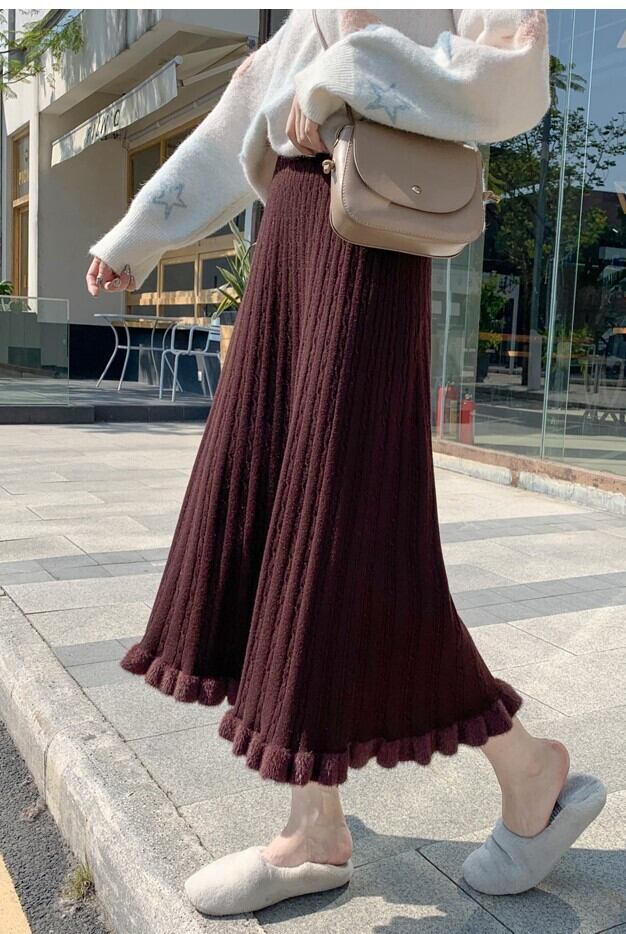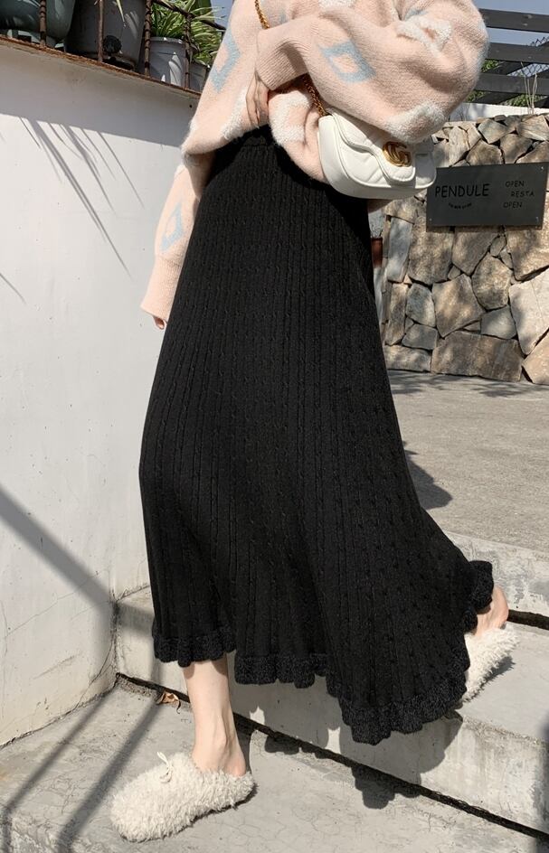 スカート レディース ロングスカート ロング丈 スリム ストレート Aライン 切り替えデザイン 裾フレア ハイウエスト ウエストゴム ニット かわいい 大人可愛い シンプル カジュアル 大人 おしゃれ レトロ 大人女子 こなれ感 ラフ ラブリー キュート ガーリー 個性的 送料無料 フリーサイズ ゆったり ブラック ブラウン イエロー 無地 春 秋 10代 20代 30代 OL 通勤 学生 通学 デート お出かけ 女子会 着回し 普段使い 韓国系 ファッション スタイル 楽ちん モテ 体型カバー トレンド