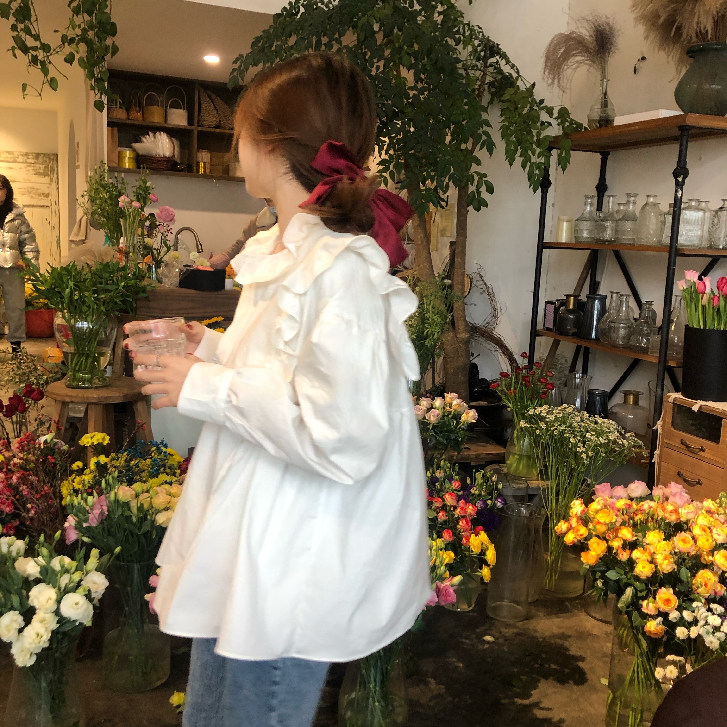 トップス レディース ブラウス プルオーバー シャツ リラックス オーバーサイズ 長袖 襟付き フリル かわいい 大人可愛い きれいめ シンプル カジュアル 大人 上品 おしゃれ レトロ 大人女子 送料無料 キュート ガーリー 個性的 エレガント フリーサイズ 大きいサイズ ゆったり ホワイト イエロー 無地 春 秋 冬 10代 20代 30代 40代 OL 通勤 学生 通学 デート お出かけ 女子会 着回し 普段使い お揃い 韓国系 ファッション スタイル 楽ちん モテ 体型カバー トレンド 流行