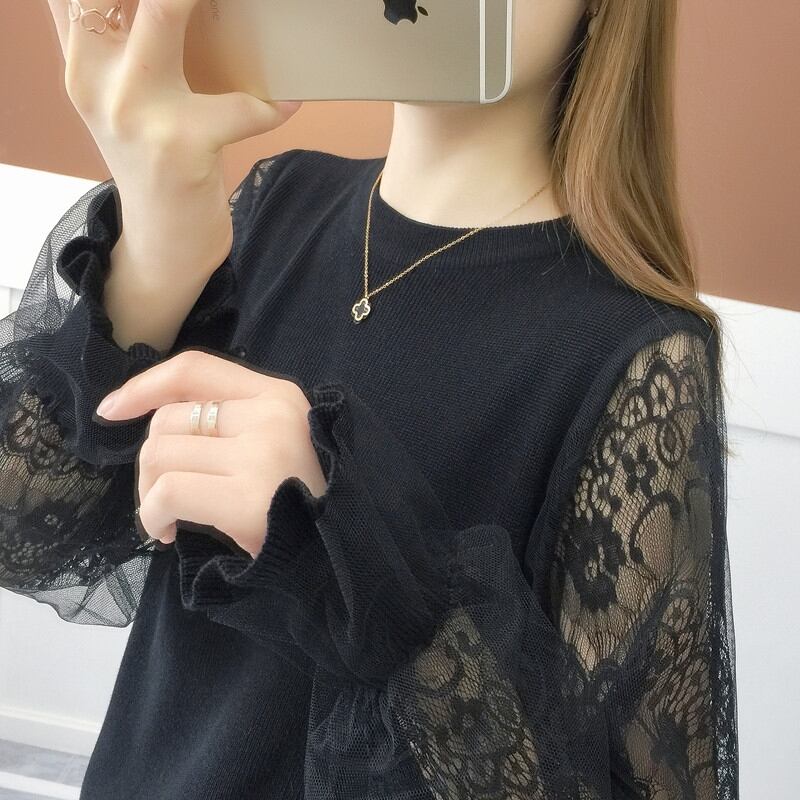 袖のレースが大人可愛いデザインのトップス。
