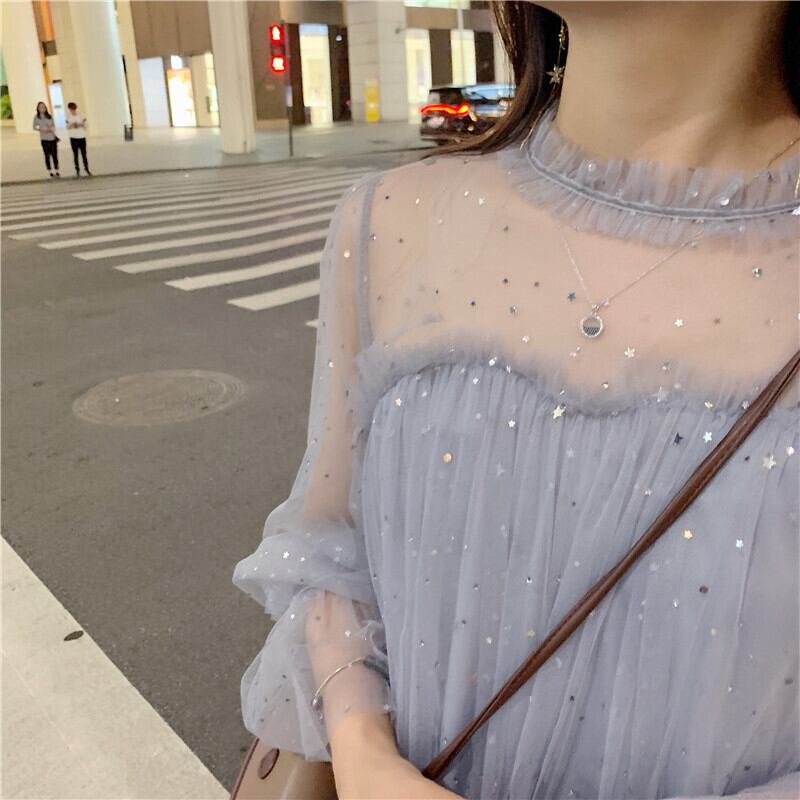 【着用レビュー】2タイプ ドレス レディース 半袖 長袖 膝丈 ひざ丈 ミモレ ミモレ丈 チュール シフォン チュール 透け感 スパンコール キラキラ フリル かわいい 大人可愛い おしゃれ お洒落 エレガント キャンディースリーブ 春 夏 秋 謝恩会 結婚式 二次会 披露宴 10代 20代 パーティー 着回し 韓国 韓国系 送料無料 ファッション コーデ スタイル モテ 体型カバー プレゼント トレンド 流行 インスタ映え S M L XL 2XL グレーブルー ベージュ ピンク ブルー ブラック