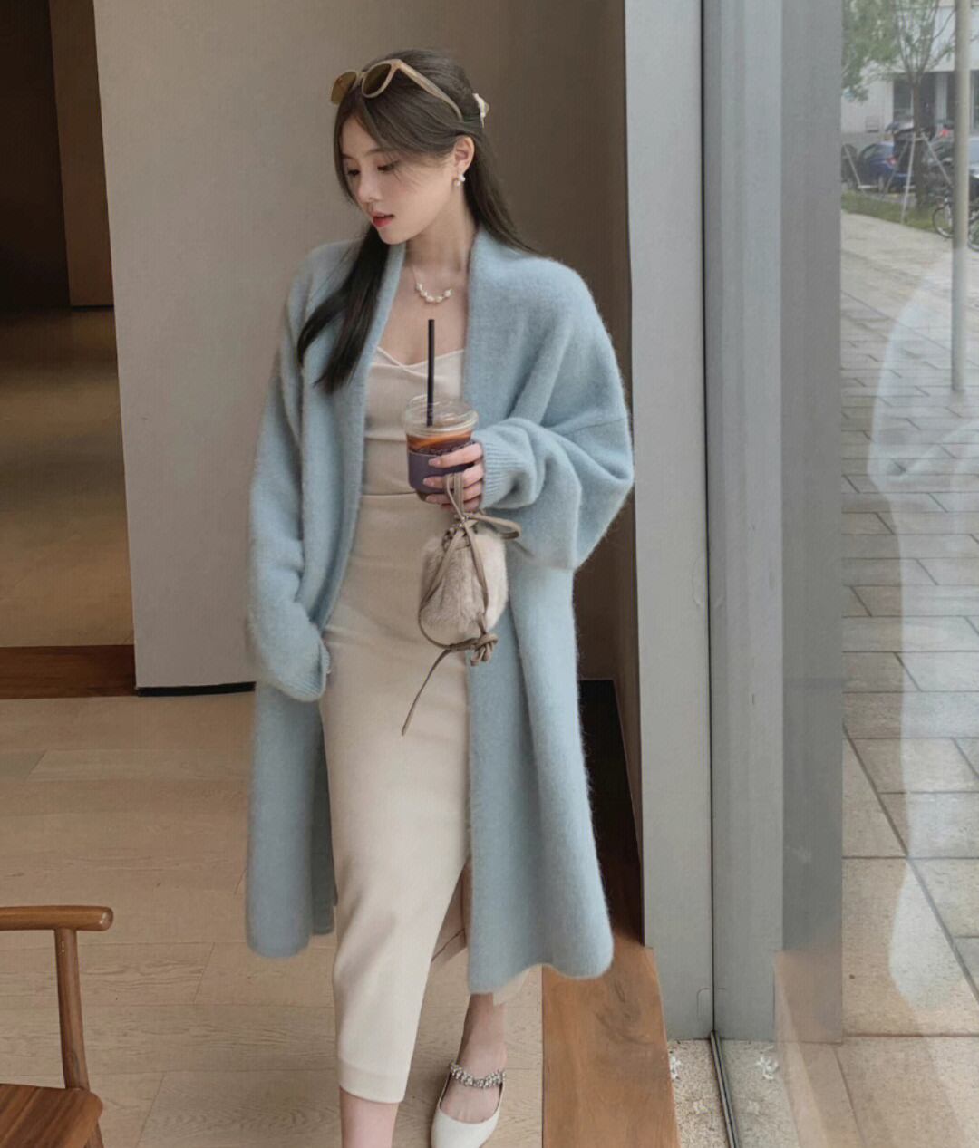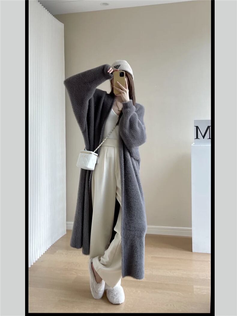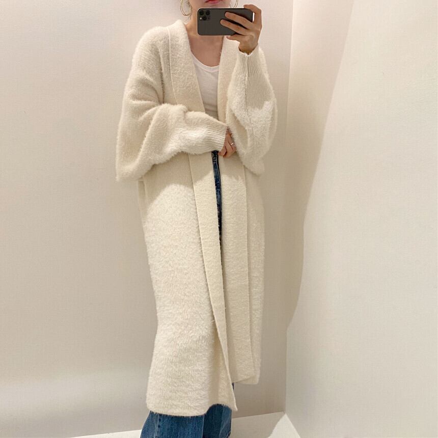 【着用レビュー】アウター レディース カーディガン ガウン ロング丈 長袖 ボリューム袖 Vネック ニット ふわふわ 前開き かわいい 大人可愛い きれいめ シンプル カジュアル 大人 上品 おしゃれ 大人女子 ラフ 送料無料 キュート ガーリー ルーズ エレガント M L XL 2XL ゆったり ホワイト ブラック ブルー グレー ピンク ブラウン 無地 秋 冬 10代 20代 30代 40代 OL 通勤 学生 通学 デート お出かけ 女子会 休日 着回し 重ね着 韓国 ファッション 楽ちん