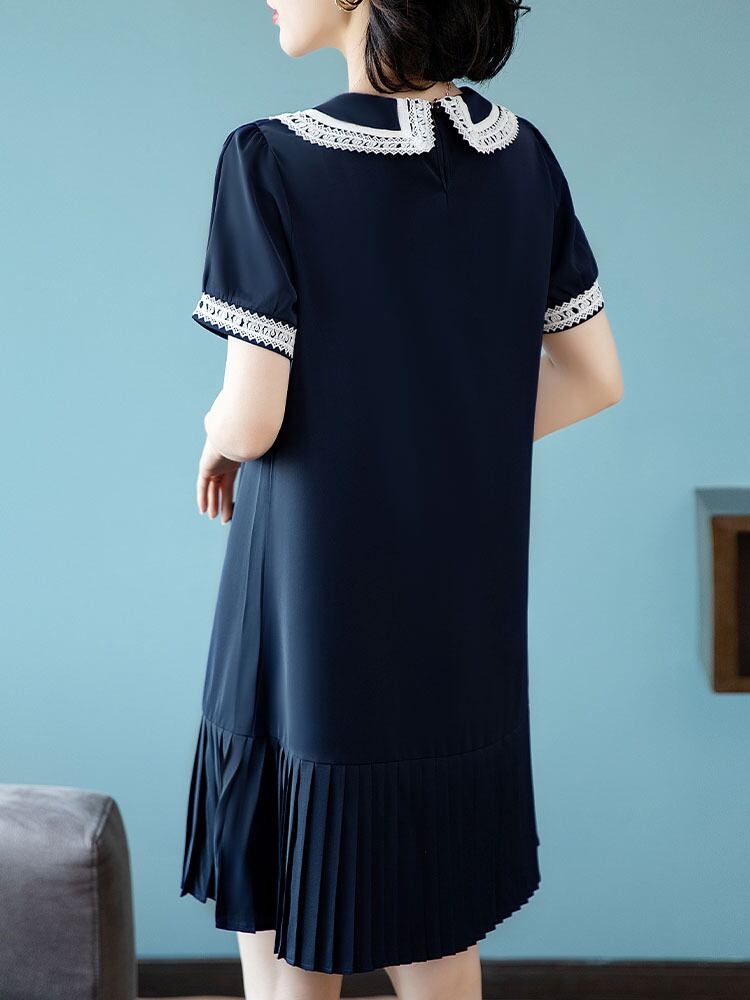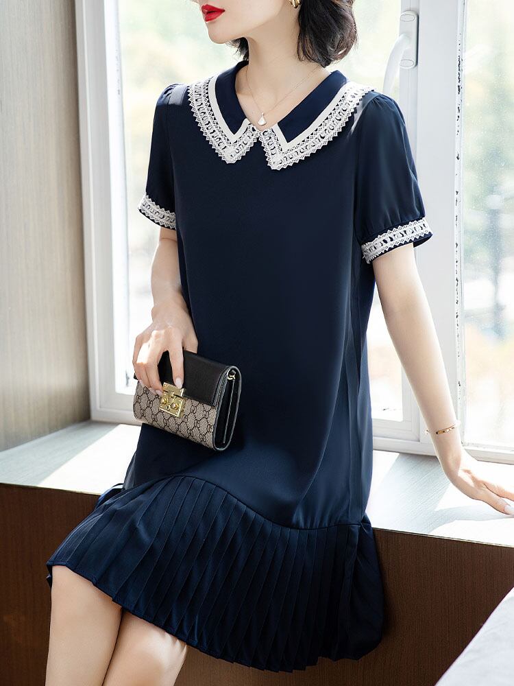 ワンピース レディース ミニワンピース S M L XL 2XL 3XL 4XL ネイビー ミニ ミニ丈 袖あり 半袖 レース バイカラー プリーツ 裾コンシャス かわいい 大人可愛い きれいめ シンプル 大人ガーリー 上品 おしゃれ お洒落 大人女子 こなれ感 キュート 個性的 主役級 存在感 無地 春 夏 サマードレス 10代 20代 30代 デート 女子会 パーティー お呼ばれ イベント 送料無料 ファッション スタイル トレンド 流行 インスタ映え