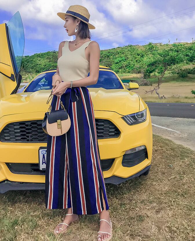ハイウエストなシルエットは腰位置を高く見せてくれ、足長効果も抜群。