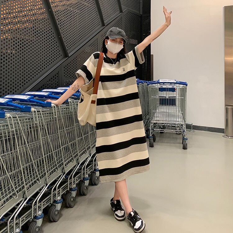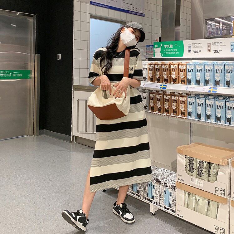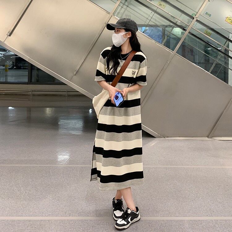 ワンピース レディース ロングワンピース 半袖 ラウンドネック マキシワンピース Tシャツワンピース ロング丈 かわいい 大人可愛い きれいめ シンプル カジュアル おしゃれ お洒落 送料無料 ラフ ラブリー キュート リラックス フェミニン ボーダー ストライプ 春 夏 秋 10代 20代 学生 通学 デート お出かけ 女子会 休日 着回し 普段使い 重ね着 韓国 韓国系 ファッション コーデ 体型カバー インスタ映え M L XL 2XL