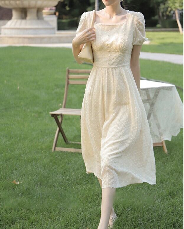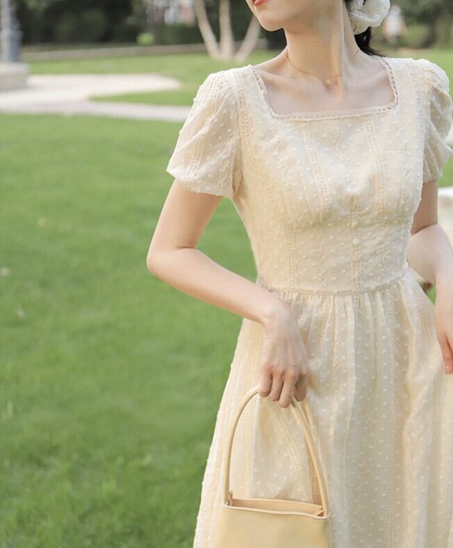 ワンピース レディース フレアワンピース S M L XL ロングワンピース 半袖 パフスリーブ スクエアネック ロング ロング丈 Aラインスカート 花刺繍 かわいい 大人可愛い きれいめ カジュアル おしゃれ お洒落 送料無料 ラフ ラブリー キュート フェミニン 癒し系 リラックス フェミニン 10代 20代 30代 40代 通勤 通学 デート お出かけ 女子会 休日 着回し 普段使い 重ね着 韓国 韓国系 ファッション コーデ 体型カバー インスタ映え