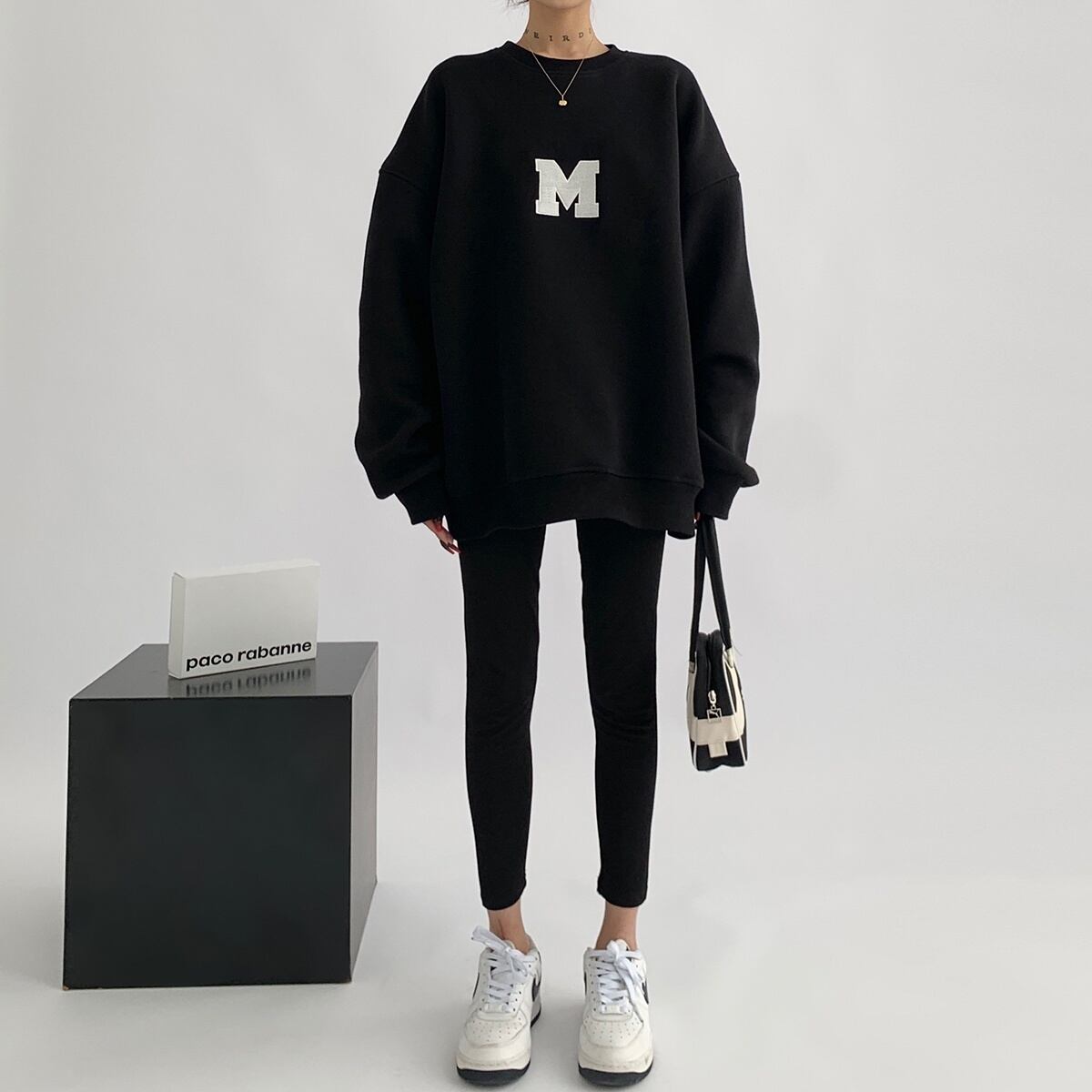 トップス レディース トレーナー ビッグT 長袖 ボリューム袖 ドロップショルダー ラウンドネック オーバーサイズ シンプル カジュアル 上品 お洒落 かっこいい 大人女子 こなれ感 ラフ メンズライク ボーイッシュ スポーティー ルーズ クール 送料無料 抜け感 無地 英字ロゴ 秋 冬 10代 20代 30代 オフィス ビジネス OL 通勤 デート お出かけ 女子会 お泊まり 休日 着回し 普段使い お揃い 双子 韓国 スタイル 楽ちん モテ 体型カバー トレンド 流行 S M L ホワイト ブラック