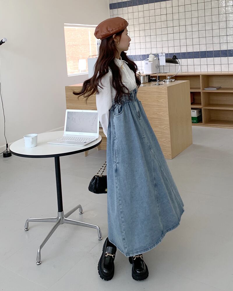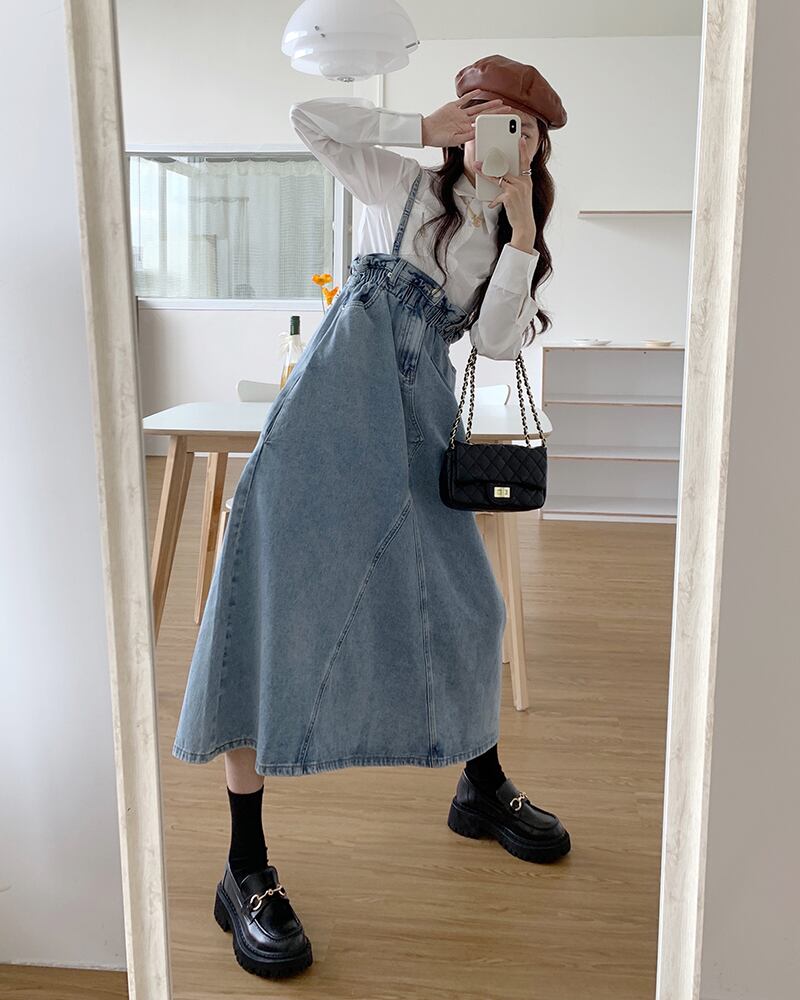 スカート レディース デニムスカート ジャンパースカート ミディアム丈 Aライン ハイウエスト サスペンダー ノースリーブ 袖なし ウエストゴム デニム かわいい 大人可愛い シンプル カジュアル 大人 上品 おしゃれ キュート ガーリー 個性的 S M L ゆったり ブルー 無地 オールシーズン 10代 20代 30代 ママ 通勤 学生 通学 デート お出かけ 女子会 着回し 普段使い 送料無料 双子 韓国系 ファッション コーデ スタイル 楽ちん モテ 体型カバー トレンド 流行 インスタ映え レトロ