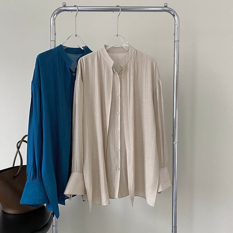 トップス レディース シャツ ブラウス 長袖 パフスリーブ ドロップショルダー スタンドカラー フロントクロス シングルブレスト 薄手 かわいい 大人可愛い シンプル カジュアル 上品 エレガント お洒落 おしゃれ 大人女子 送料無料 キュート ガーリー ルーズ クール 清楚感 きちんと感 無地 春 夏 秋 冬 10代 20代 30代 40代 オフィス ビジネス OL 通勤 デート お出かけ 女子会 お泊まり 休日 パーティー イベント 着回し 普段使い 韓国 ファッション スタイル モード 楽ちん