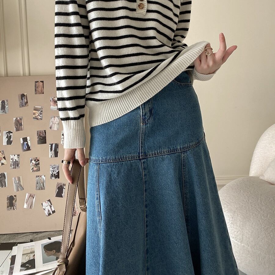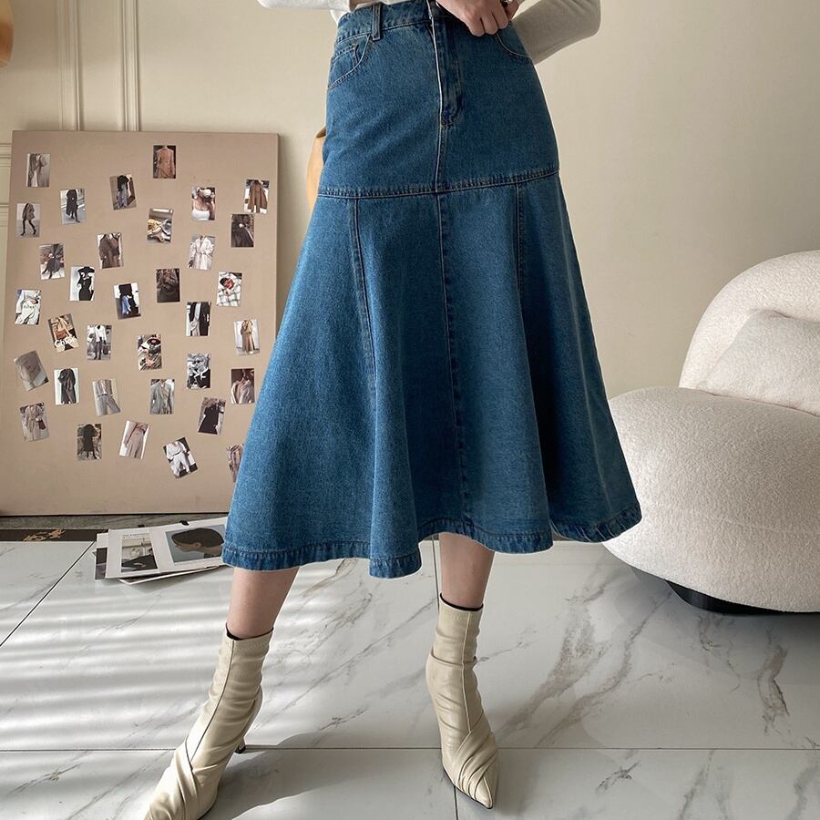 スカート レディース マーメードスカート ロング丈 フレア ウエストボタン デニム 大人可愛い シンプル カジュアル 上品 お洒落 レトロ 大人女子 こなれ感 キュート ガーリー ルーズ クール セクシー エレガント 主役級 存在感 高級感 温かい 清楚感 きちんと感 無地 秋 冬 10代 20代 30代 オフィス ビジネス OL 通勤 デート お出かけ 女子会 お泊まり 休日 パーティー イベント 着回し 普段使い お揃い 双子 韓国 送料無料 ファッション スタイル 楽ちん モテ 体型カバー 美脚
