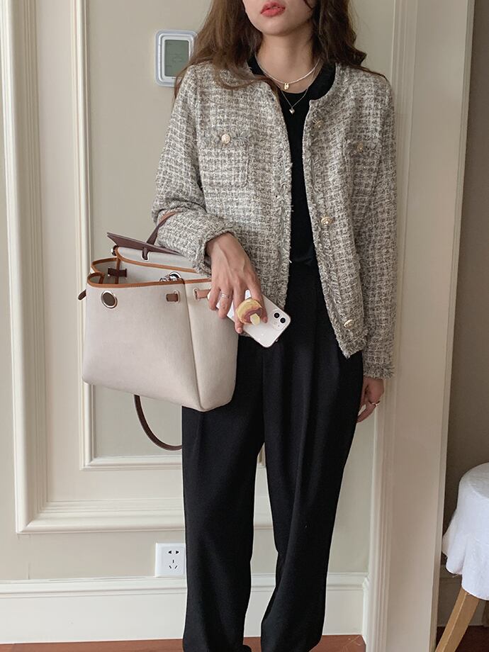アウター レディース ジャケット ツイードジャケット ショート ショート丈 長袖 ノーカラー かわいい 大人可愛い きれいめ 大人 上品 おしゃれ お洒落 レトロ 大人女子 こなれ感 キュート エレガント 主役級 存在感 秋 冬 発表会 演奏会 お呼ばれ 20代 30代 40代 50代 ビジネス OL 通勤 学生 通学 デート お出かけ 女子会 休日 着回し 普段使い 韓国 韓国系 送料無料 ファッション コーデ スタイル モテ トレンド 流行 S M L グレー