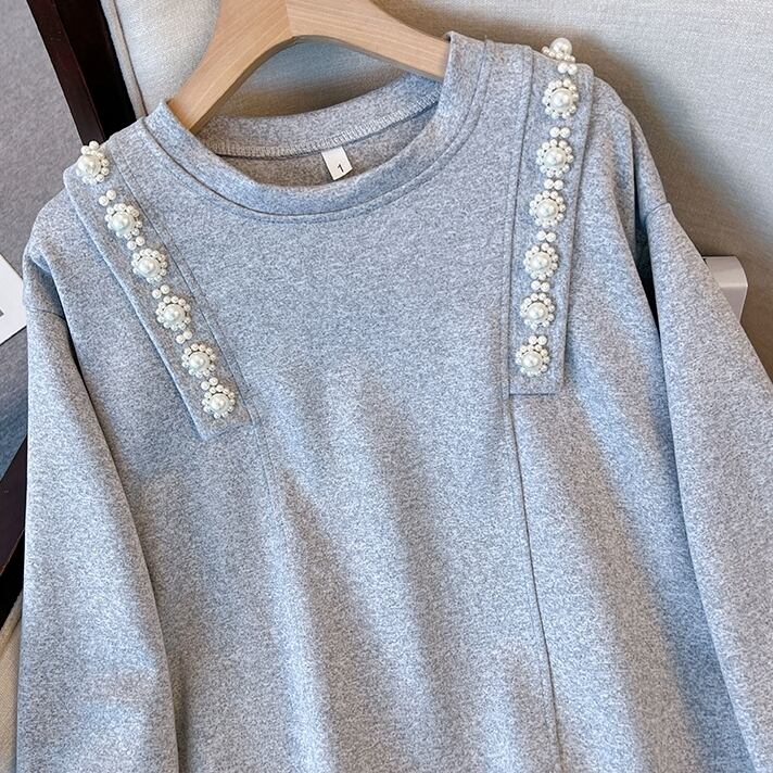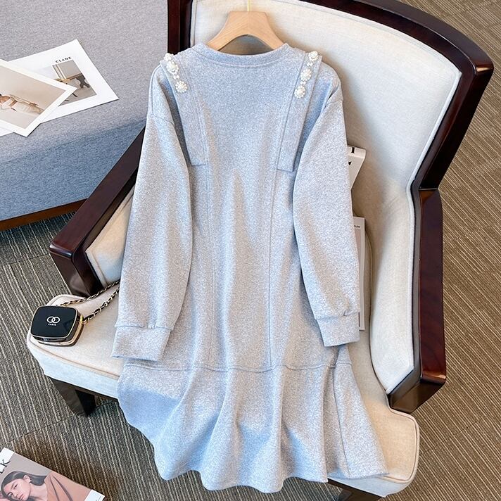 【着用レビュー】ワンピース レディース ミニワンピース ミニ丈 パール付き ビジュー 袖あり 長袖 ラウンドネック ドロップショルダー Iライン フレアワンピース マーメイドライン かわいい 大人可愛い きれいめ シンプル 大人 上品 おしゃれ お洒落 大人女子 送料無料 モード系 無地 春 秋 冬 10代 20代 30代 40代 OL 通勤 通学 学生 デート お出かけ 女子会 休日 着回し 普段使い 韓国系 ファッション コーデ 楽ちん 定番 インスタ L XL 2XL 3XL 4XL