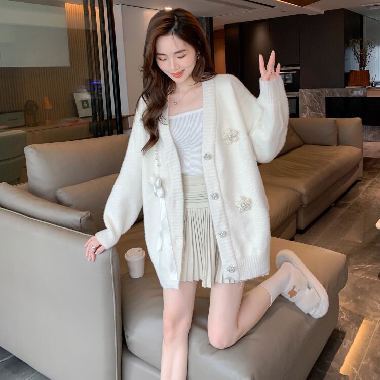 トップス レディース カーディガン 長袖 ボリューム袖 Vネック リボン ボタン パール 刺繍 ニット かわいい 大人可愛い きれいめ シンプル カジュアル 大人 上品 おしゃれ 大人女子 送料無料 キュート ガーリー ルーズ 個性的 S M L XL 2XL ゆったり ホワイト ブラック 無地 花柄 秋 冬 10代 20代 30代 通勤 学生 通学 デート お出かけ 女子会 着回し 普段使い 韓国系 ファッション コーデ スタイル 楽ちん あったか モテ 体型カバー トレンド 流行 インスタ映え